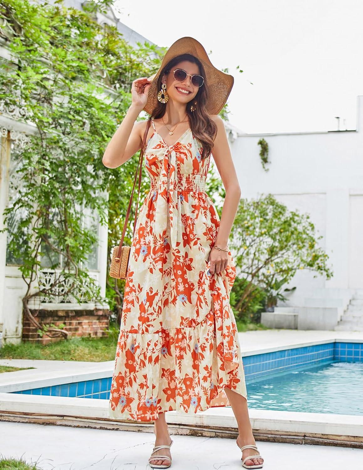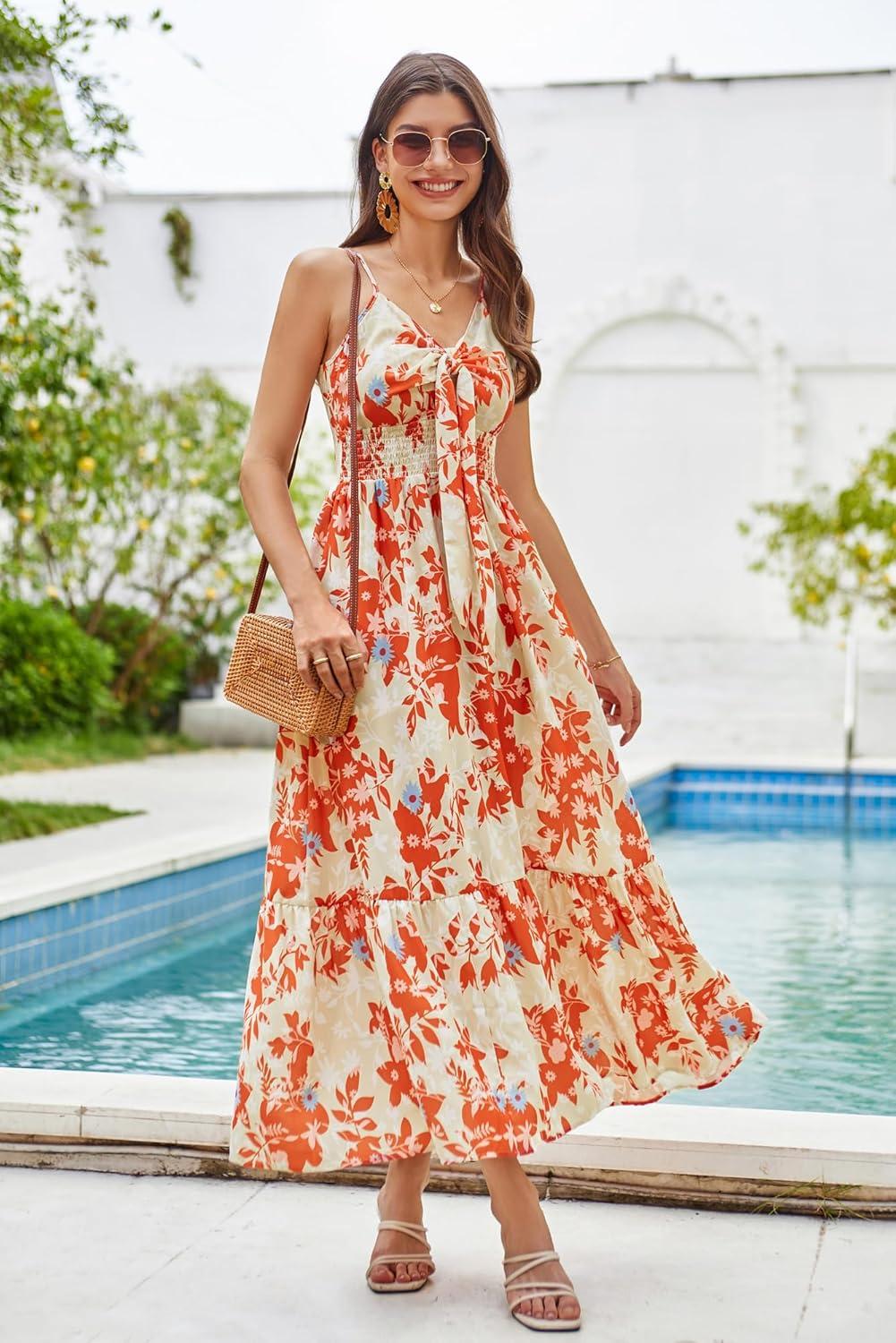 Get up to 50% off on GRACE KARIN Women’s 2025 Summer Beach Dress Floral V Neck Tie Front Spaghetti Strap Flowy Long Dress Boho Maxi Dress(Orange Floral) styles during our spring sale event.