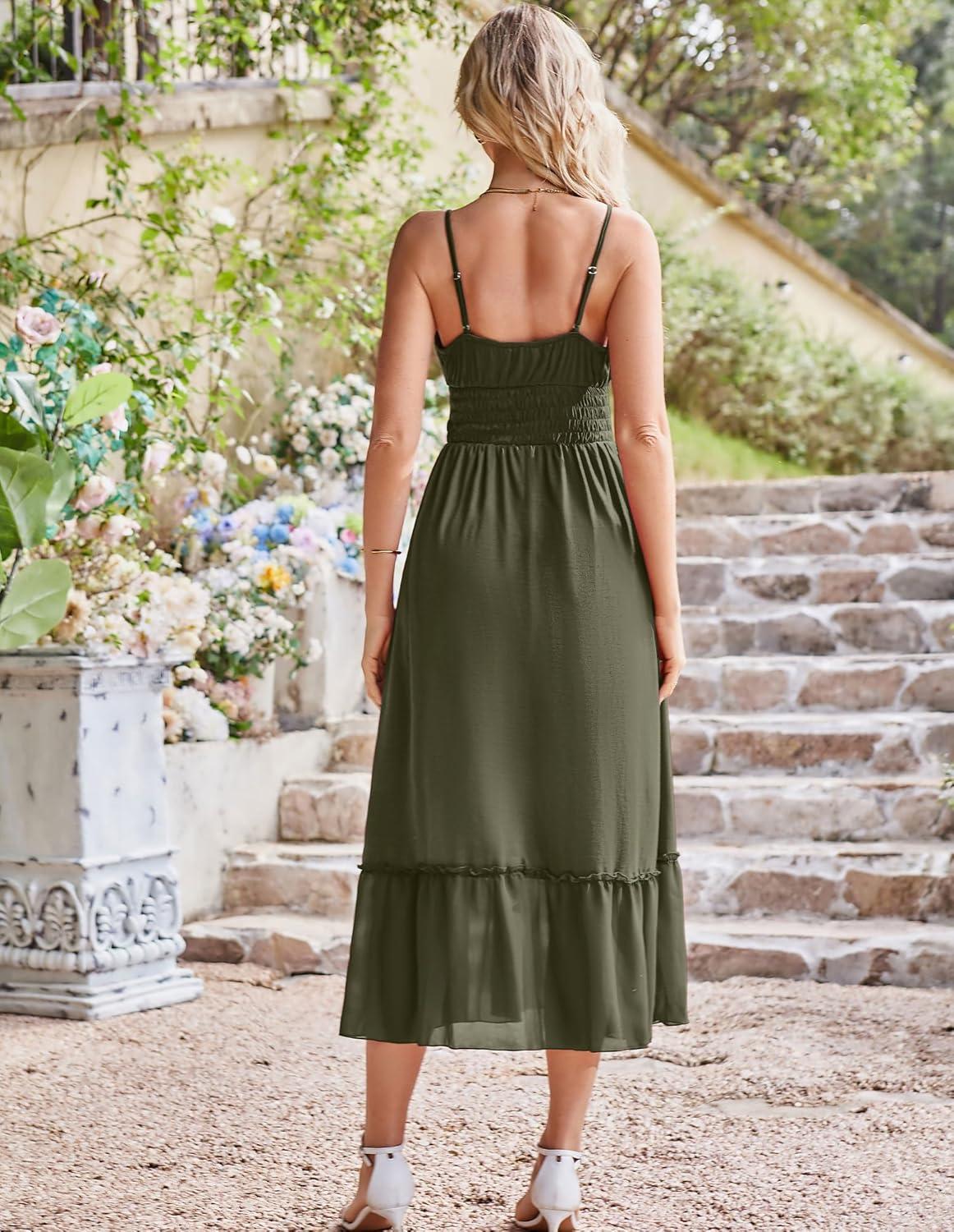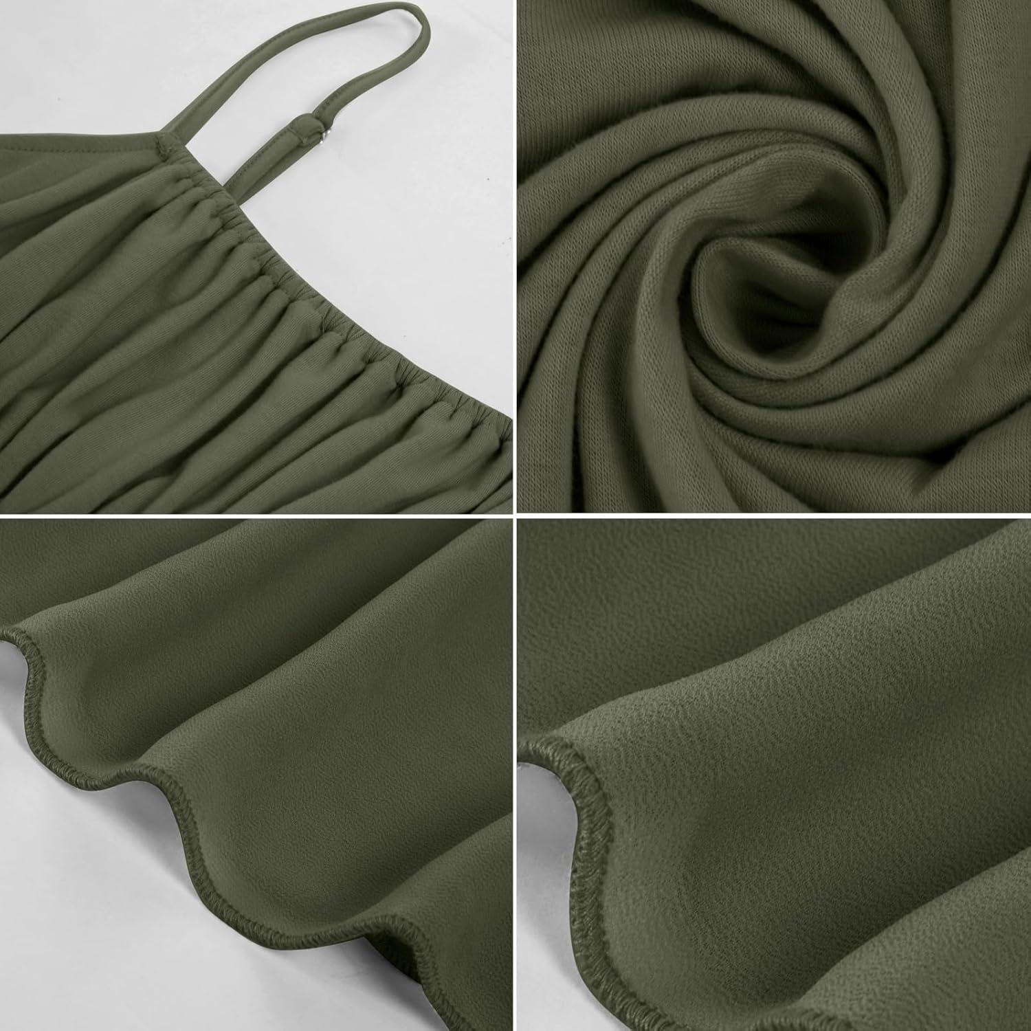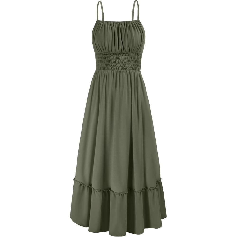 GRACE KARIN Womens 2025 Summer Dress Casual Sleeveless Spaghetti Strap Smocked Ruffle Beach Long Maxi Dress with Pockets(Olive Green)