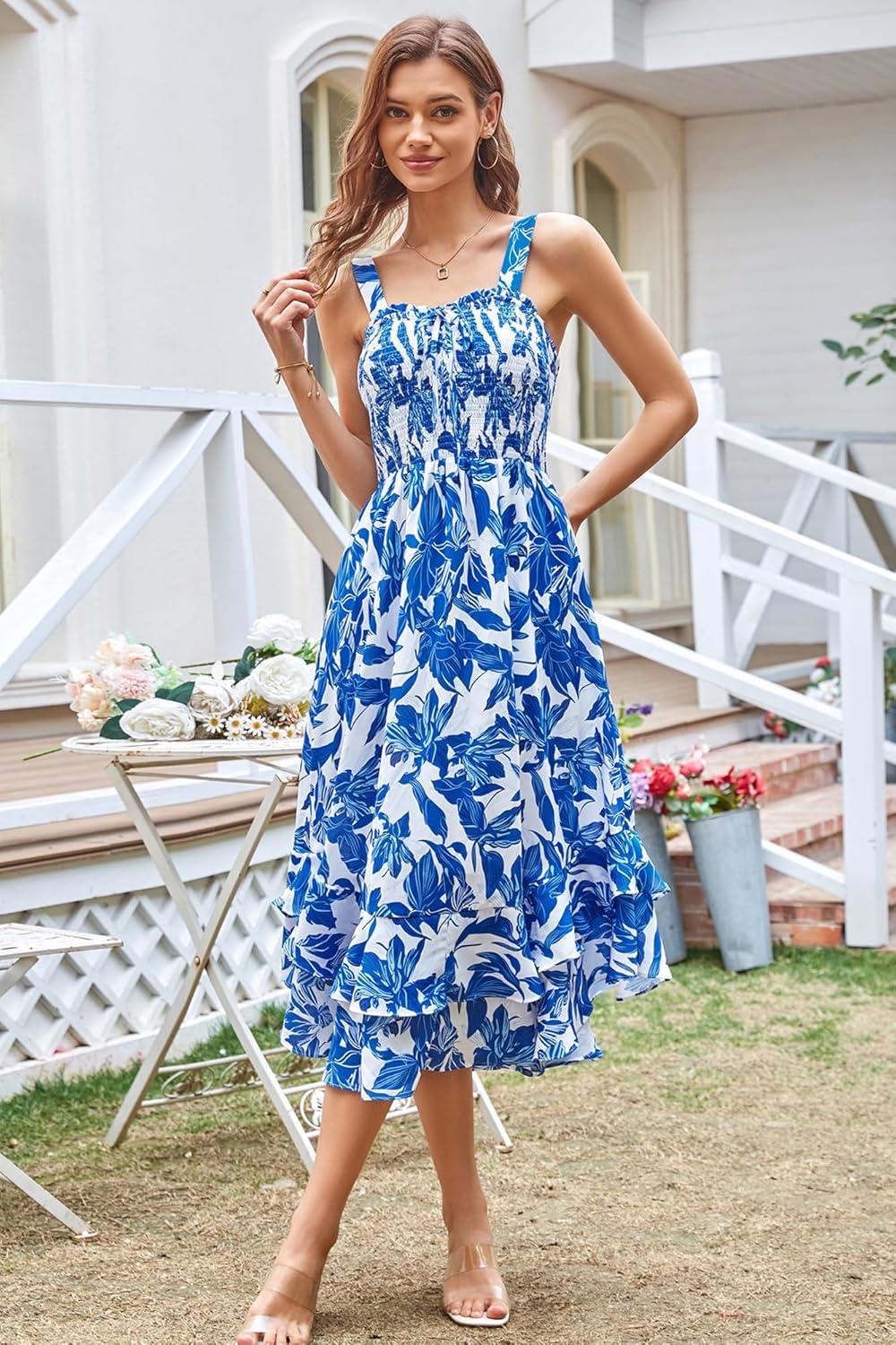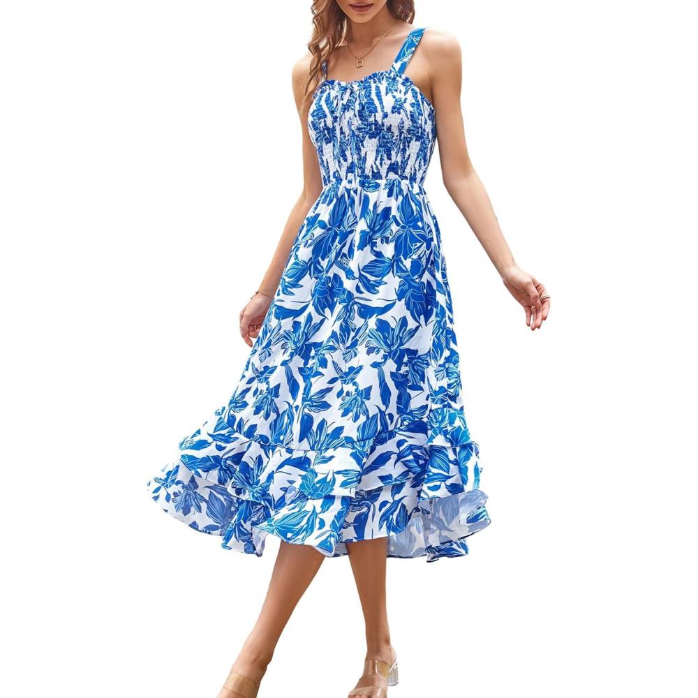 Get your hands on our exclusive GRACE KARIN Women’s 2025 Summer Floral Boho Dress Square Neck Strapped Swing A Line Beach Long Maxi Outfits Clothes(Blue White) collection, now at a discounted price.