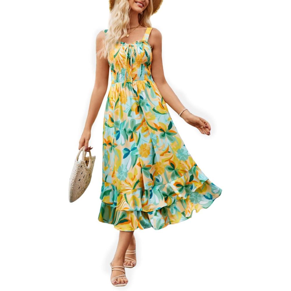 Be the first to review “GRACE KARIN Women’s 2025 Summer Floral Boho Dress Square Neck Strapped Swing A Line Beach Long Maxi Outfits Clothes(Green Yellow)” Cancel reply