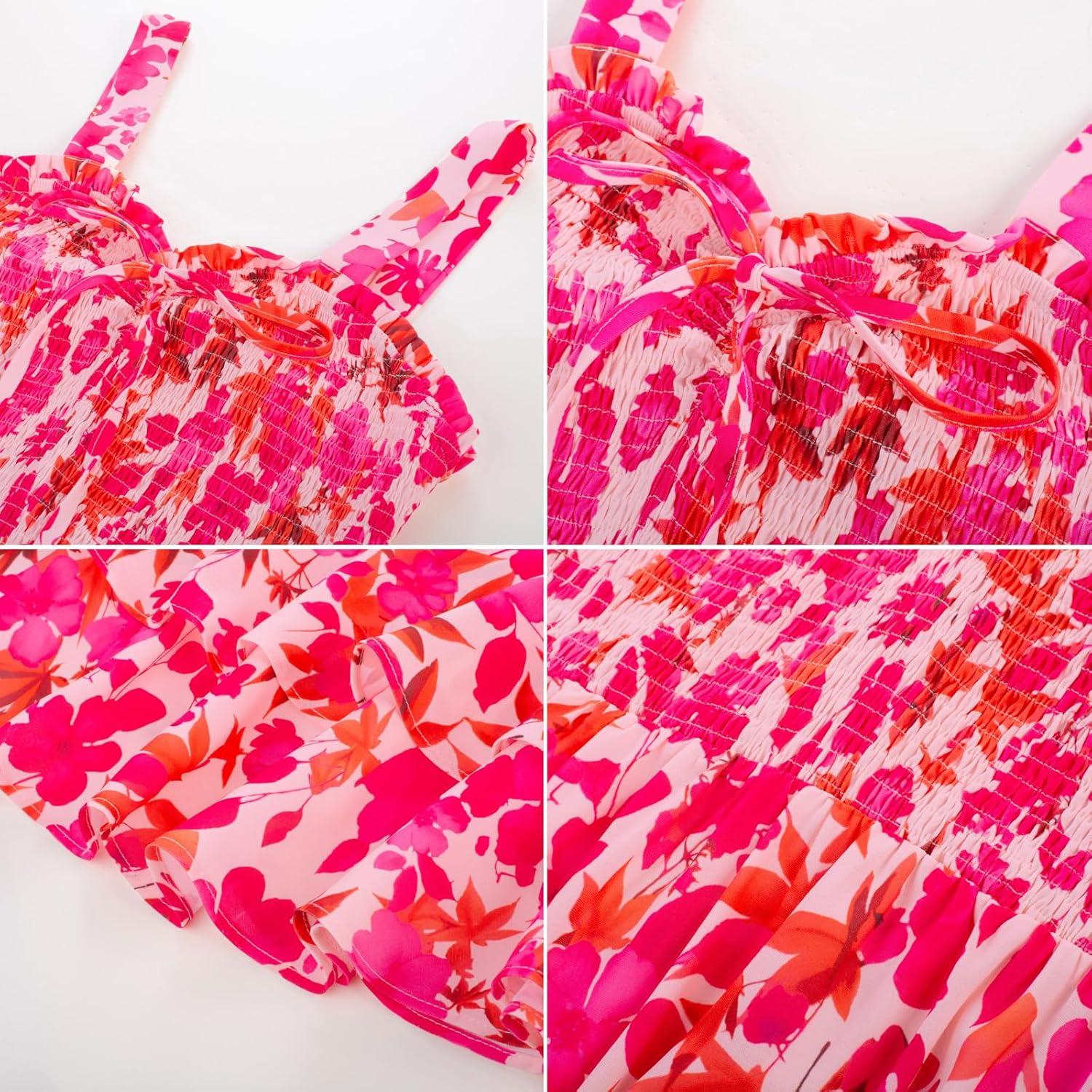 GRACE KARIN Women’s 2025 Summer Floral Boho Dress Square Neck Strapped Swing A Line Beach Long Maxi Outfits Clothes(Rose Red)