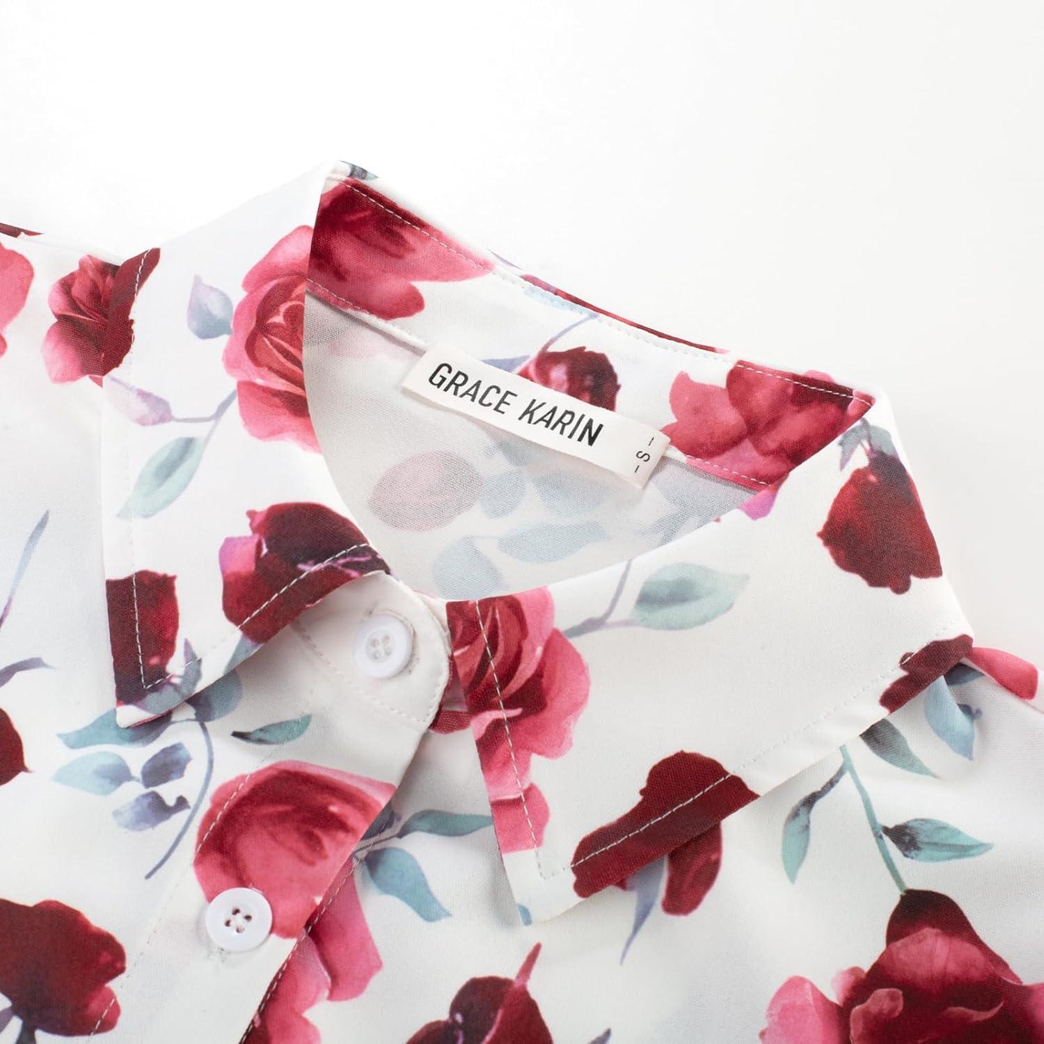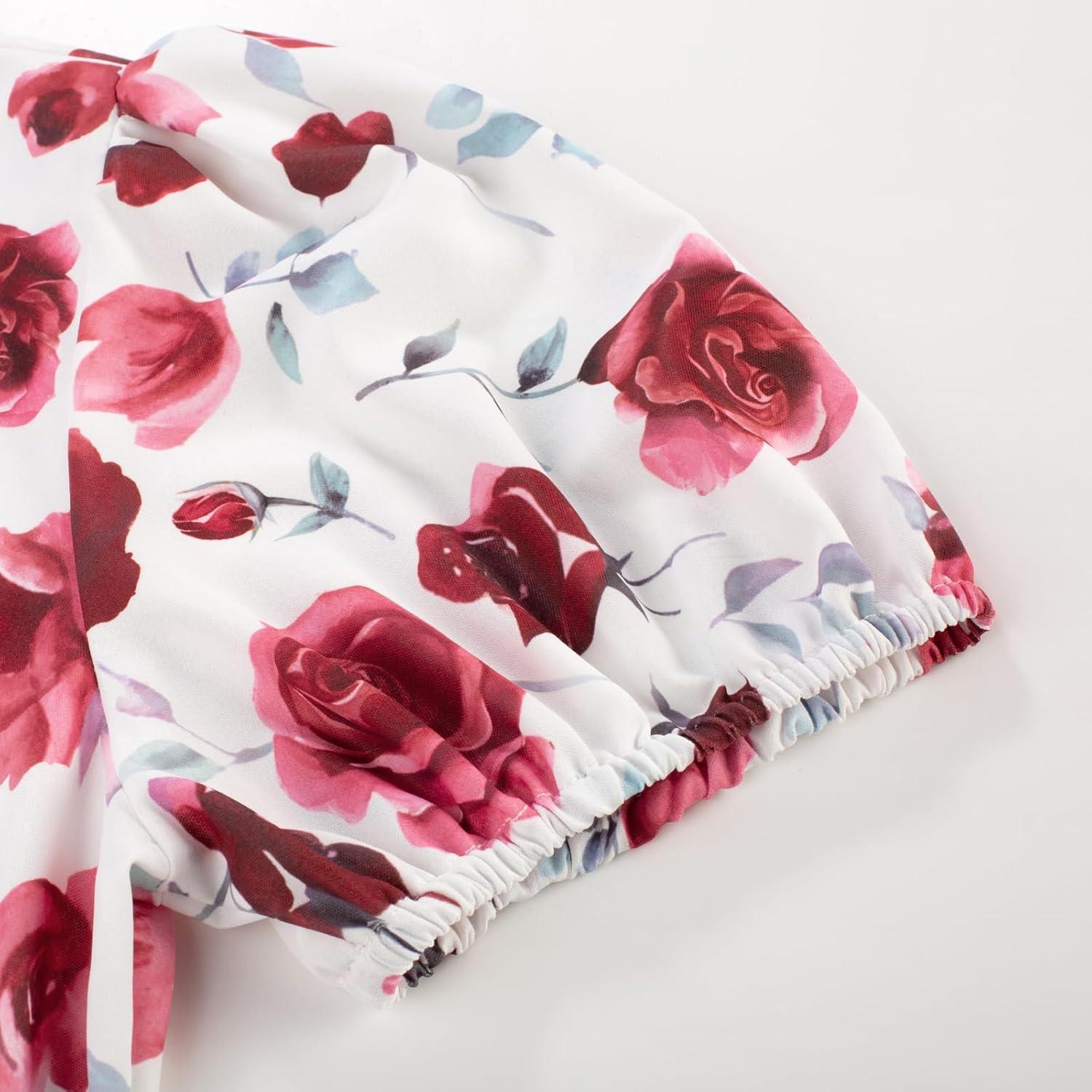 GRACE KARIN Women's 2025 Summer Floral Flowy Dresses Boho Tie Belt Short Puff Sleeve A Line Maxi Shirt Dress with Pocket(Rose)