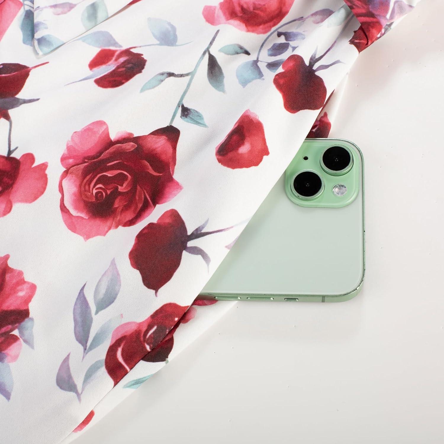 GRACE KARIN Women’s 2025 Summer Floral Flowy Dresses Boho Tie Belt Short Puff Sleeve A Line Maxi Shirt Dress with Pocket(Rose)