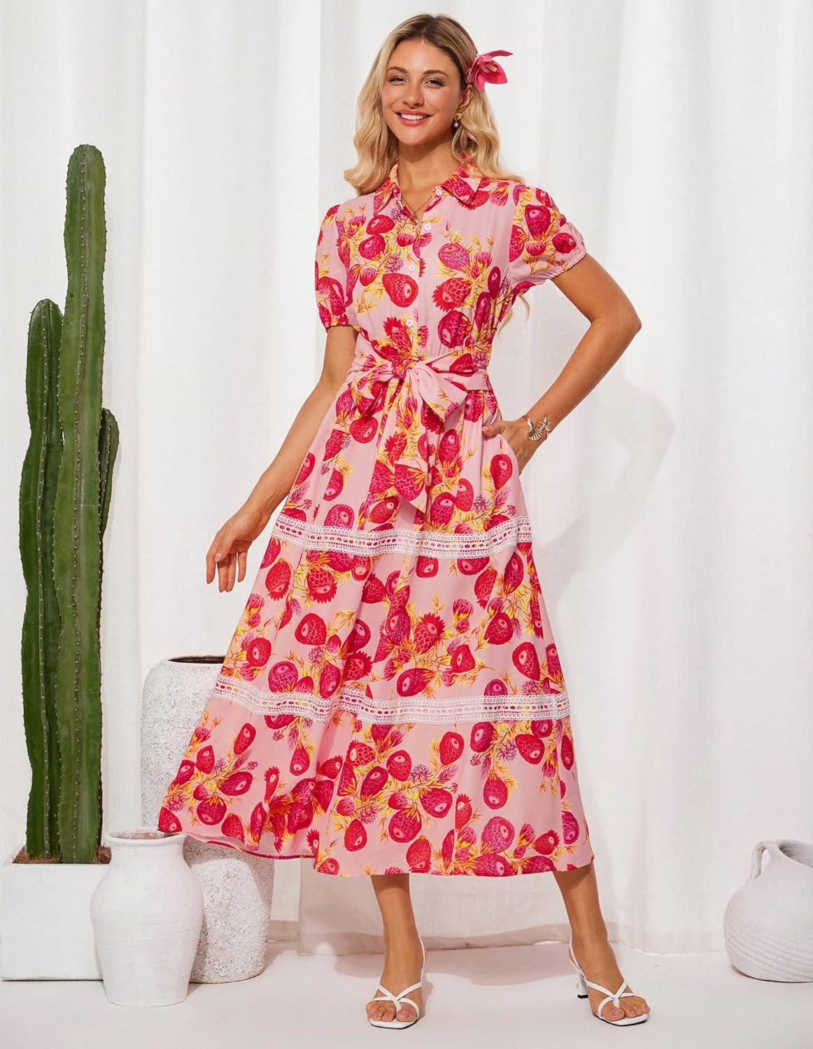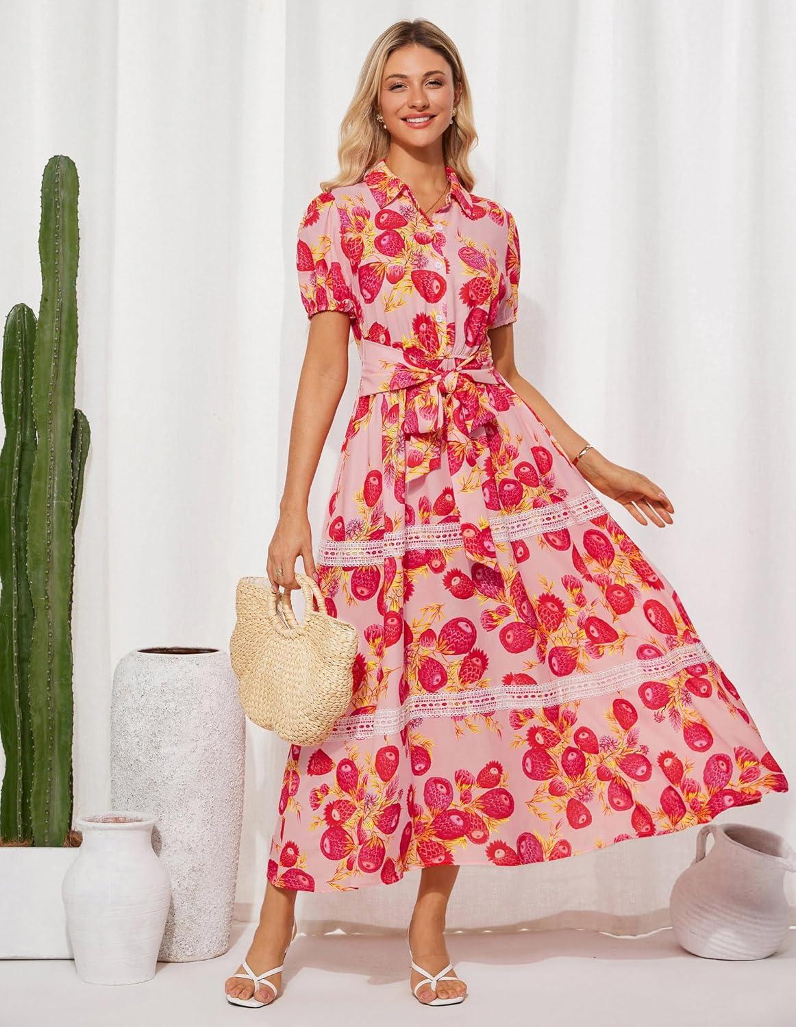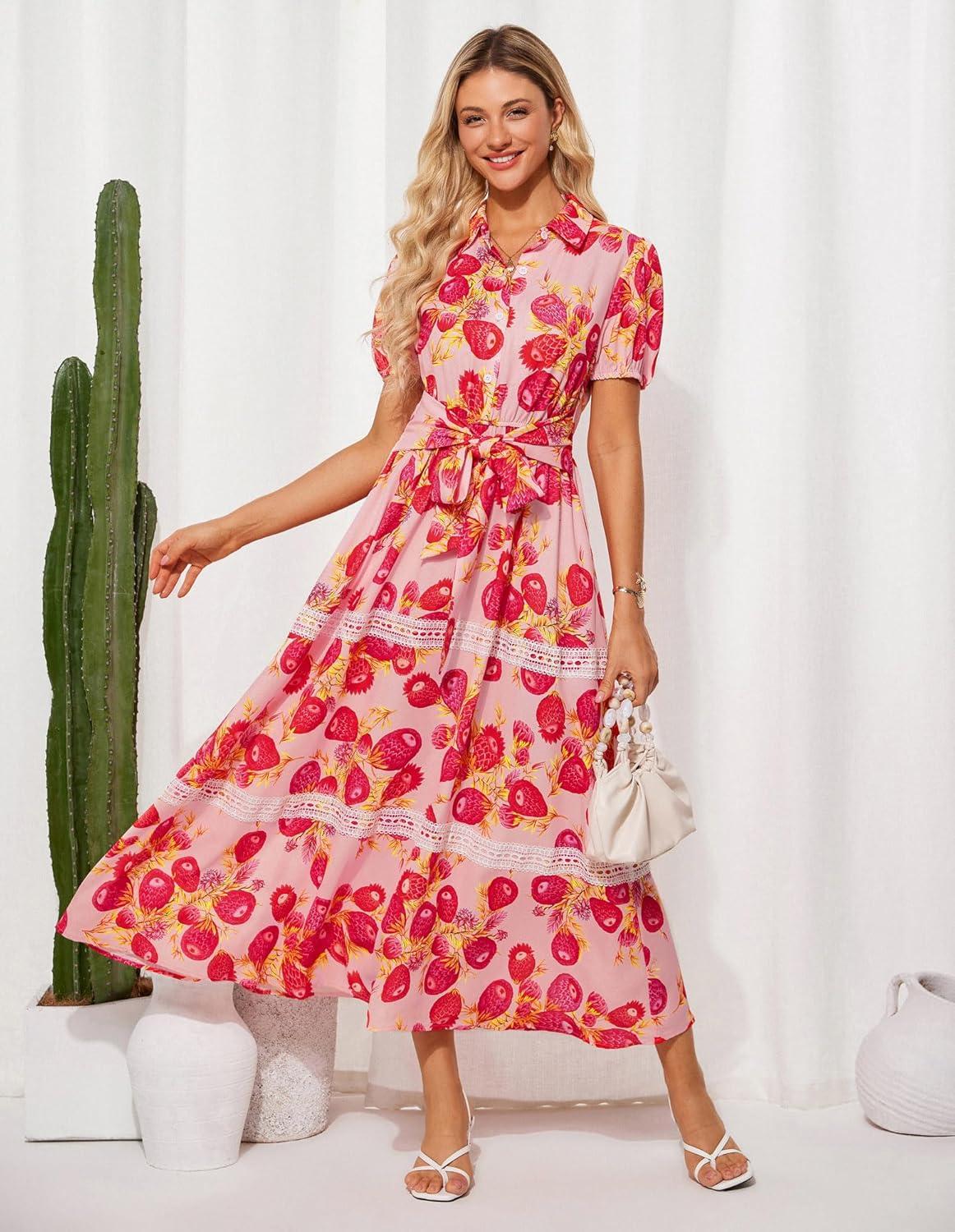 Our clearance section features the best deals on GRACE KARIN Women’s 2025 Summer Floral Flowy Dresses Boho Tie Belt Short Puff Sleeve A Line Maxi Shirt Dress with Pocket(White Red) and accessories. Check it out now!