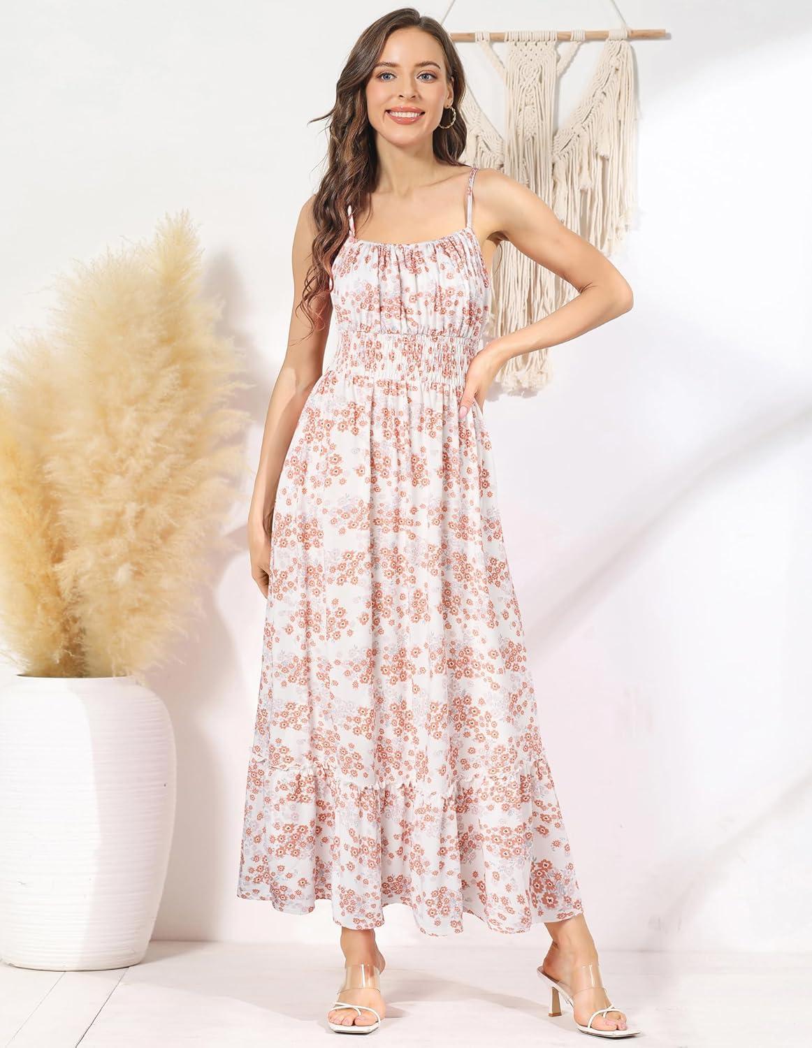 GRACE KARIN Womens 2025 Summer Maxi Dress Sleeveless Floral Spaghetti Strap Smocked Boho Beach Long Dress with Pockets(Beige Floral)