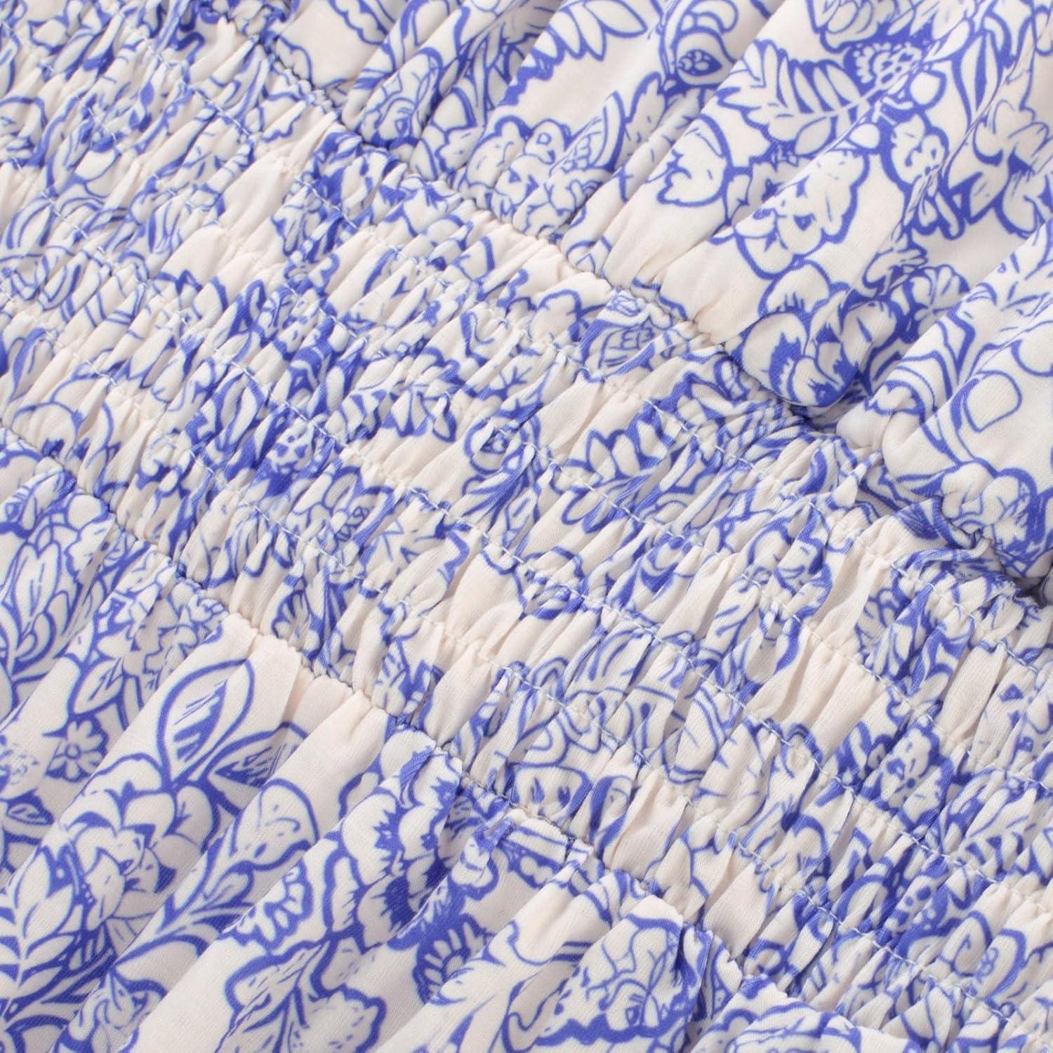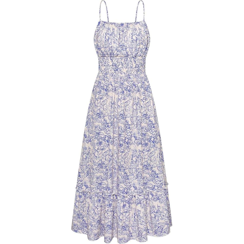 GRACE KARIN Womens 2025 Summer Maxi Dress Sleeveless Floral Spaghetti Strap Smocked Boho Beach Long Dress with Pockets(Blue White Floral)