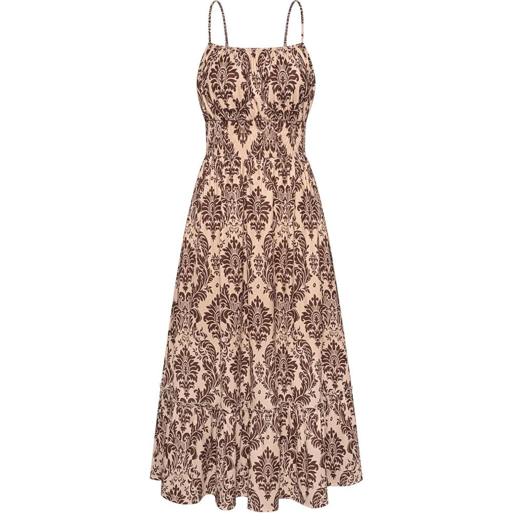 GRACE KARIN Womens 2025 Summer Maxi Dress Sleeveless Floral Spaghetti Strap Smocked Boho Beach Long Dress with Pockets(Brown Floral)