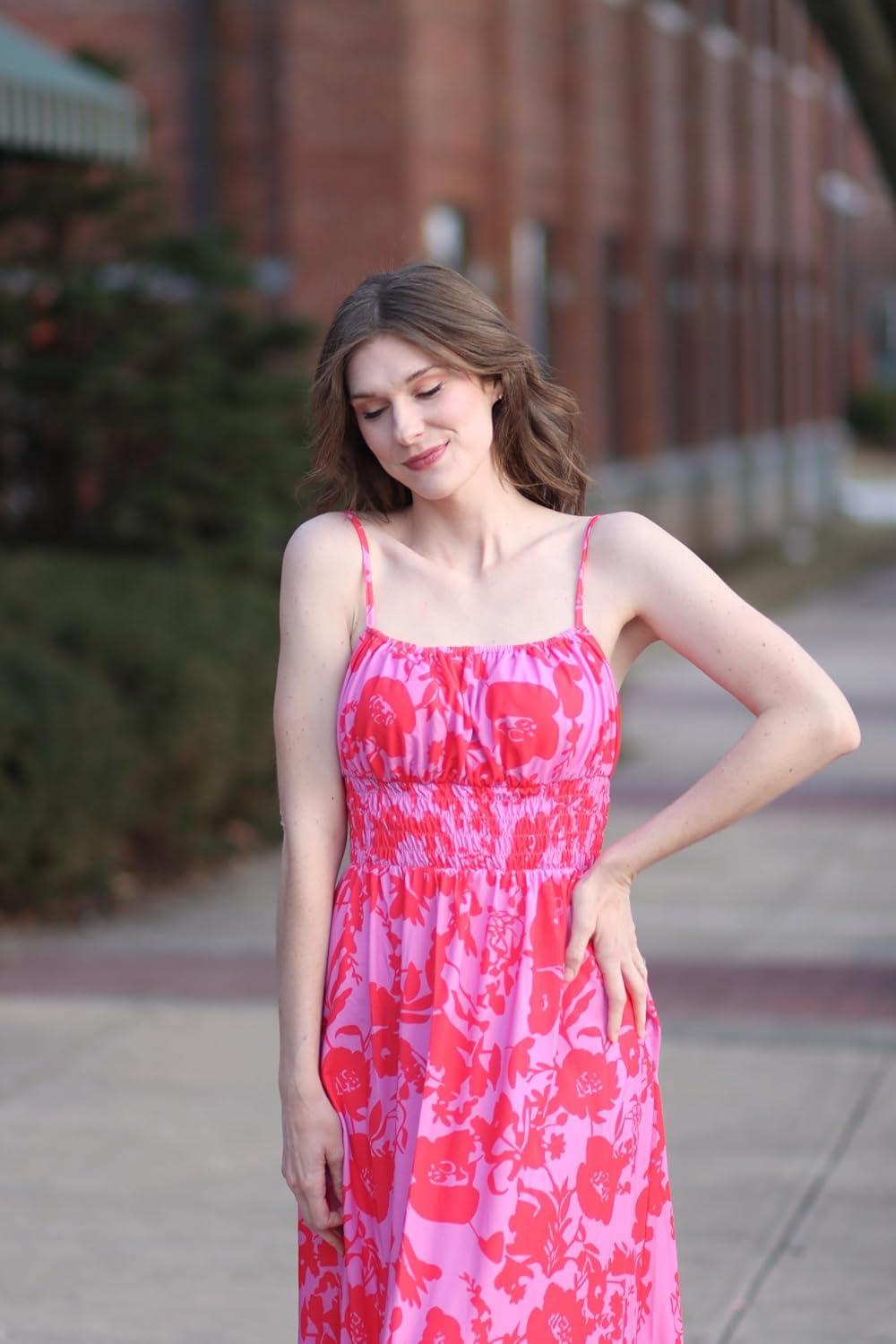 imageGRACE KARIN Womens 2025 Summer Maxi Dress Sleeveless Floral Spaghetti Strap Smocked Boho Beach Long Dress with PocketsPurple Red Floral
