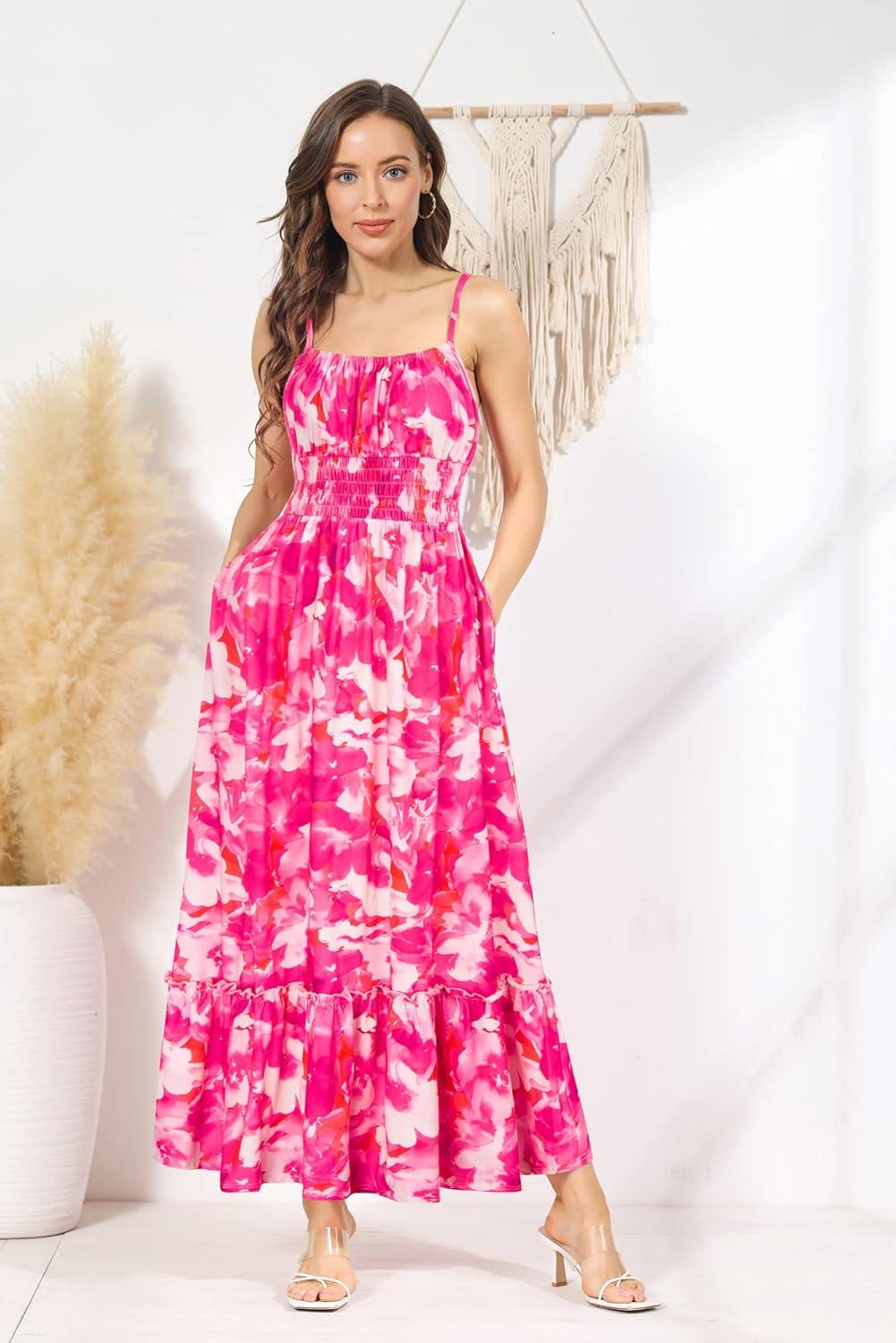 Don’t miss out on our limited-time offer: buy GRACE KARIN Womens 2025 Summer Maxi Dress Sleeveless Floral Spaghetti Strap Smocked Boho Beach Long Dress with Pockets(Rose Red Floral), get {accessory} free!