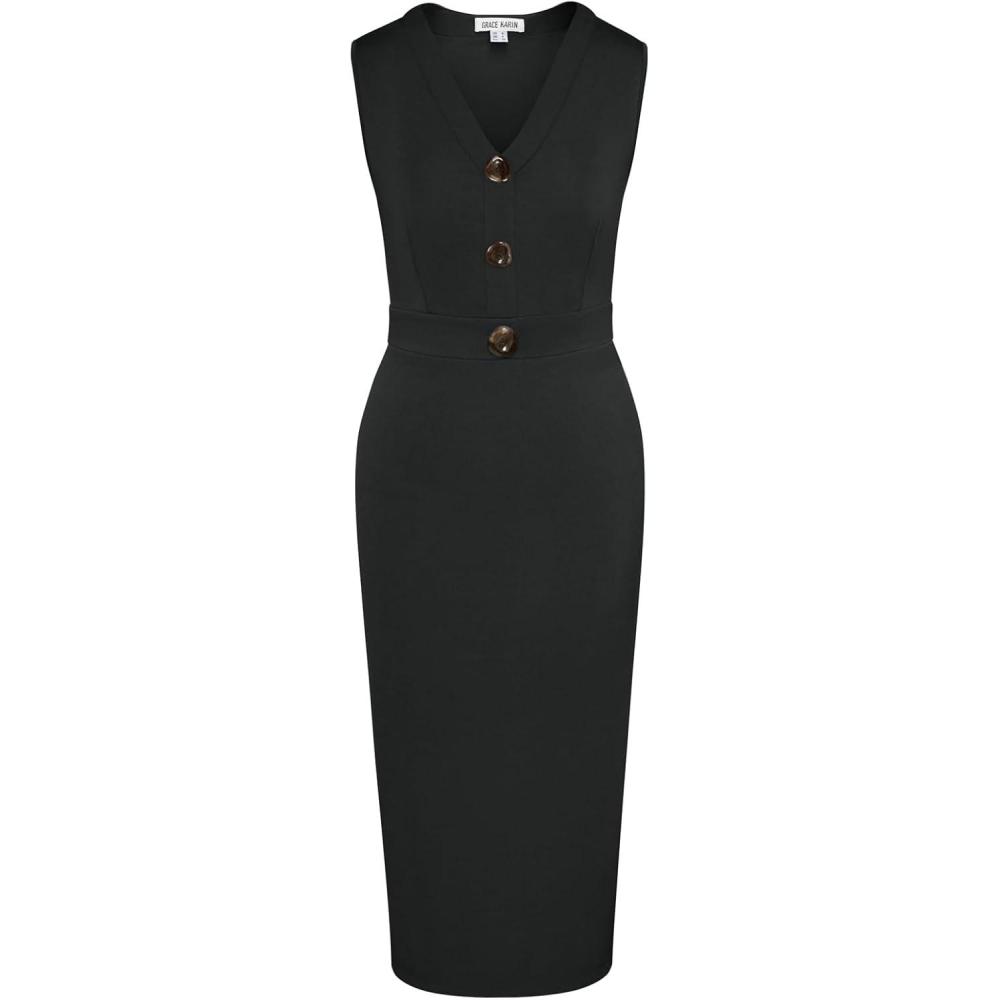 Be the first to review “GRACE KARIN Women’s 2025 Summer Wear to Work Dress V Neck Sleeveless Office Business Midi Sheath Pencil Dresses(Black)” Cancel reply