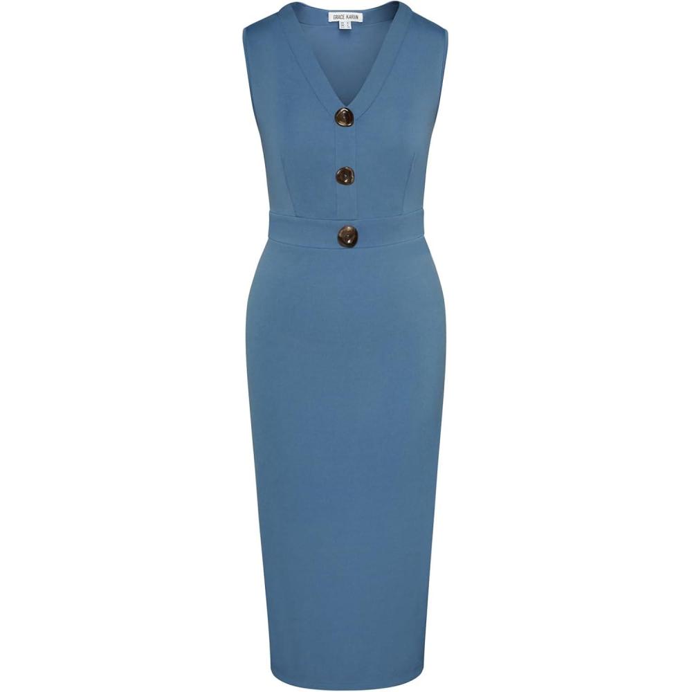 Be the first to review “GRACE KARIN Women’s 2025 Summer Wear to Work Dress V Neck Sleeveless Office Business Midi Sheath Pencil Dresses(Indigo Blue)” Cancel reply