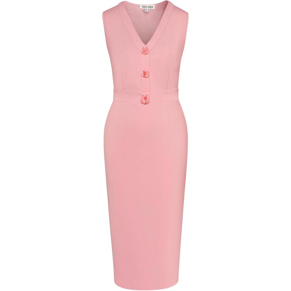Score big on GRACE KARIN Women’s 2025 Summer Wear to Work Dress V Neck Sleeveless Office Business Midi Sheath Pencil Dresses(Pink) and accessories during our BOGO sale. Buy one, get one 50% off!