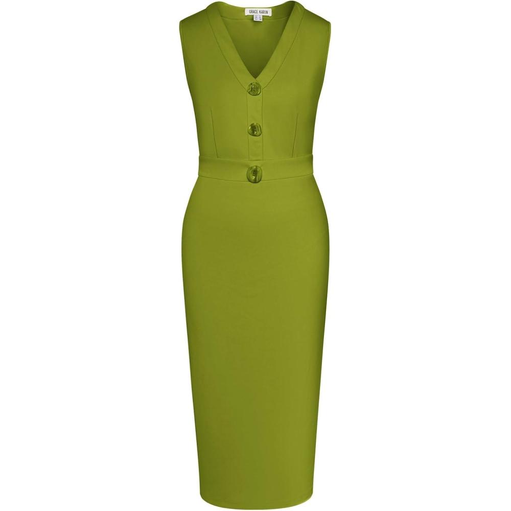 Be the first to review “GRACE KARIN Women’s 2025 Summer Wear to Work Dress V Neck Sleeveless Office Business Midi Sheath Pencil Dresses(Yellow Green)” Cancel reply