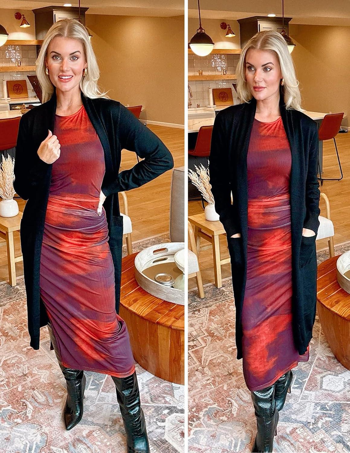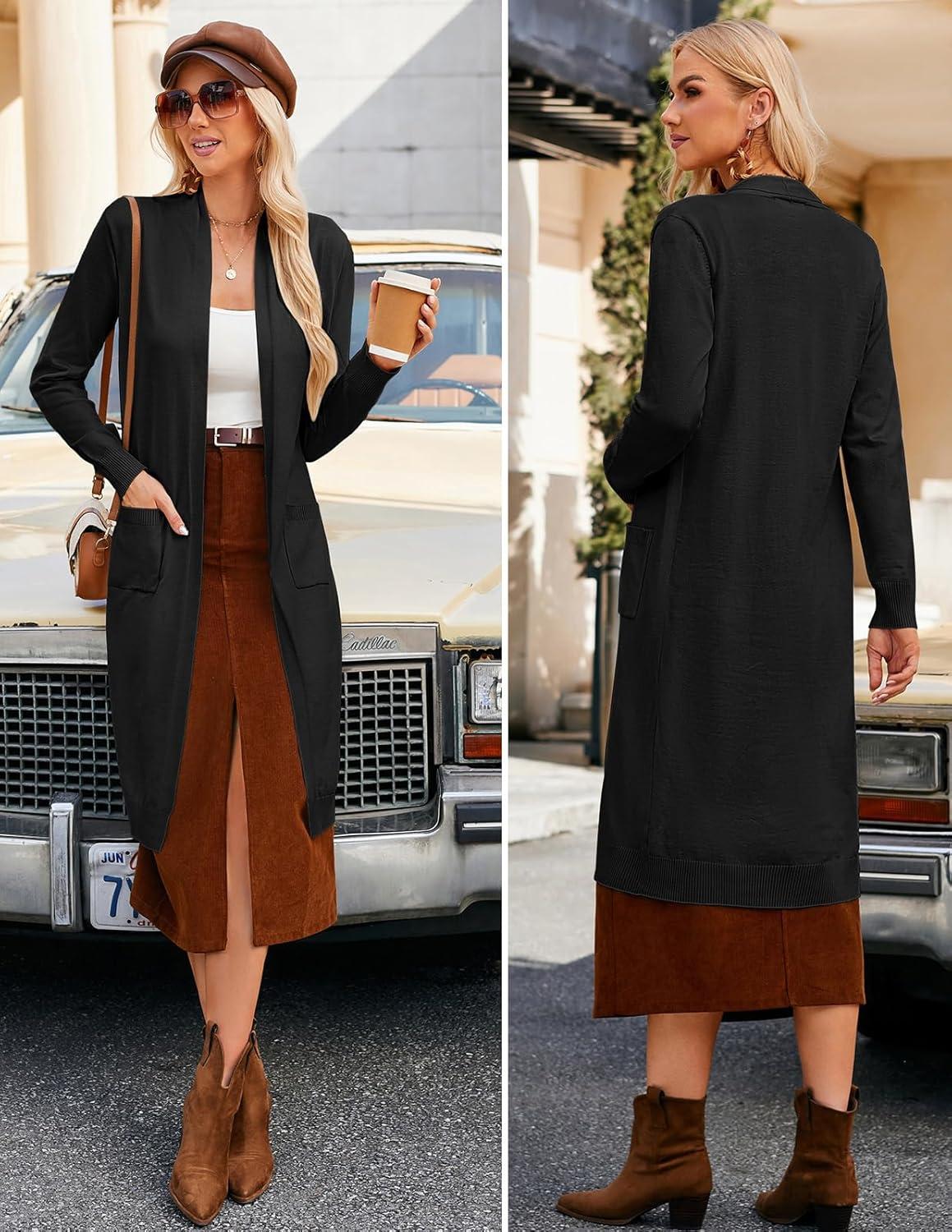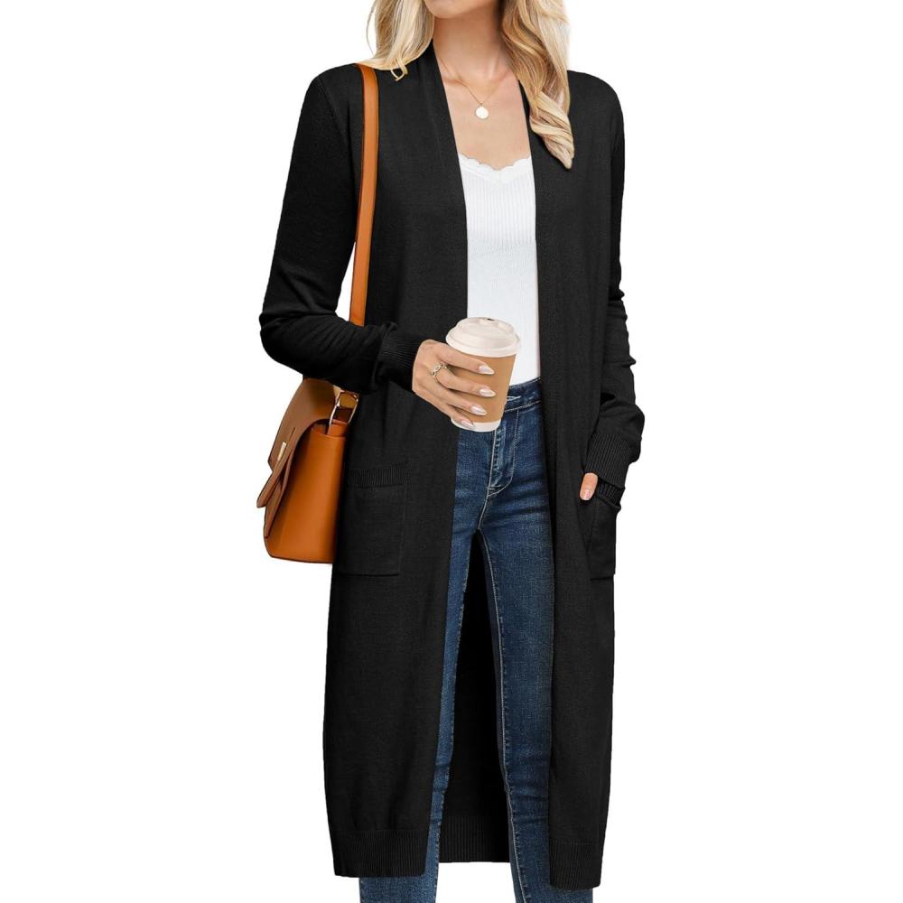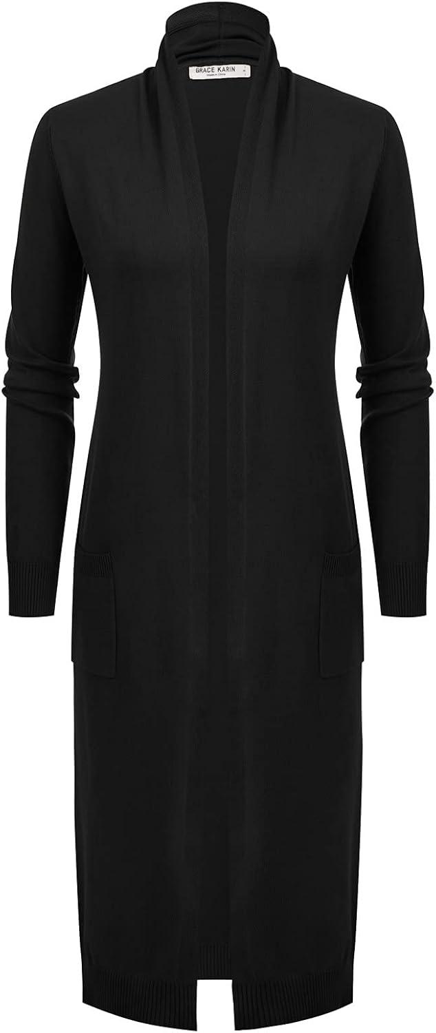 GRACE KARIN Women’s 2025 Trendy Long Cardigans Sweater Lightweight Open Front Long Sleeve Maxi Duster Coats with Pockets(Black)