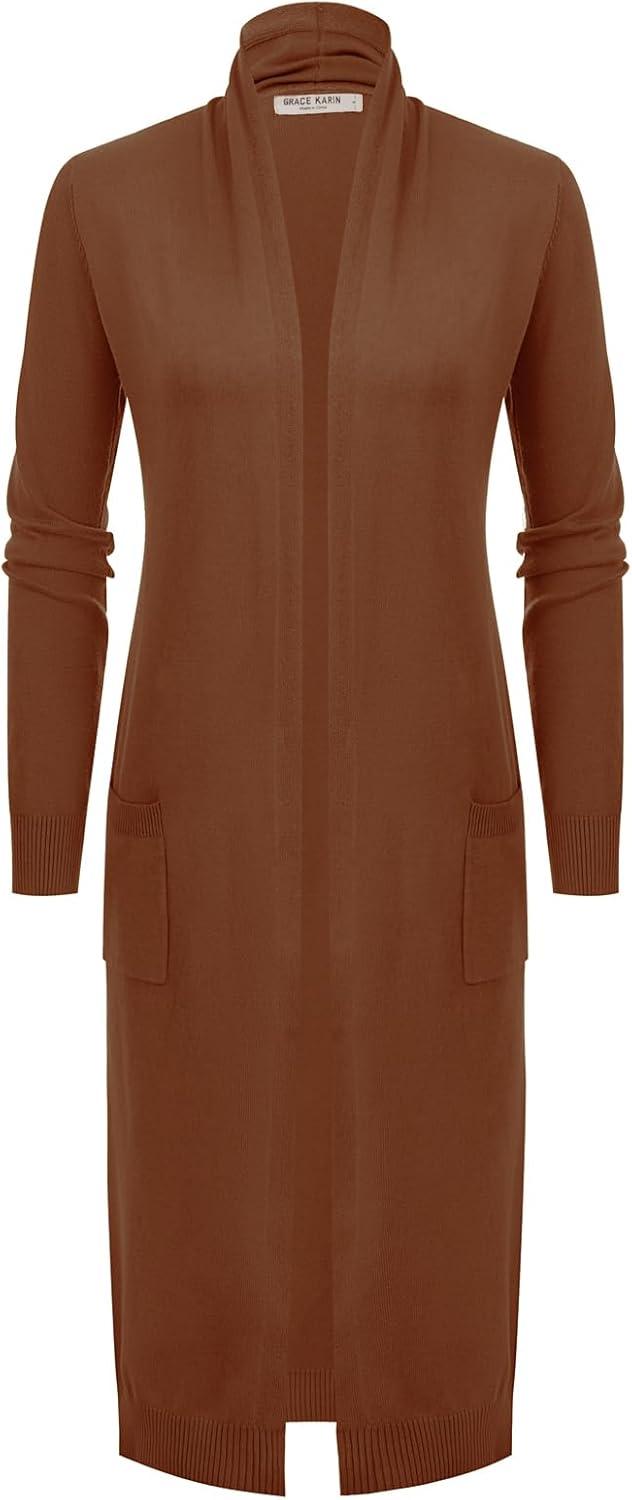 GRACE KARIN Women's 2025 Trendy Long Cardigans Sweater Lightweight Open Front Long Sleeve Maxi Duster Coats with Pockets(Brown)