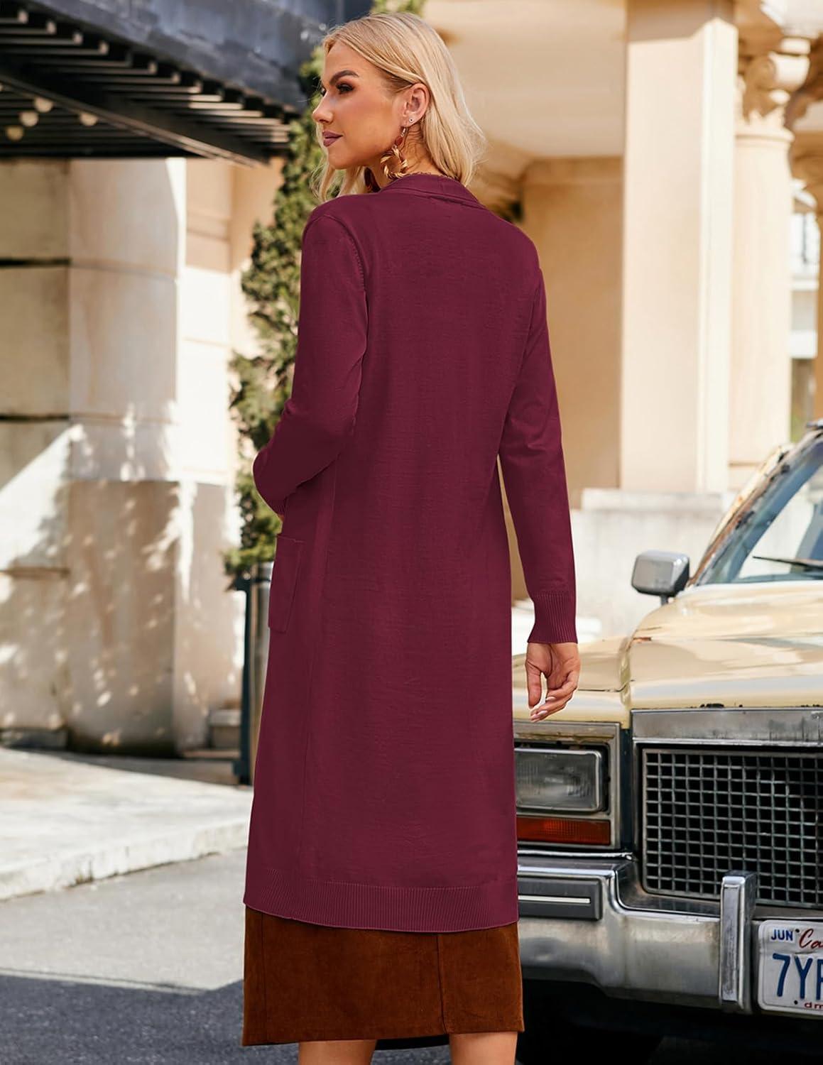 GRACE KARIN Women's 2025 Trendy Long Cardigans Sweater Lightweight Open Front Long Sleeve Maxi Duster Coats with Pockets(Burgundy)