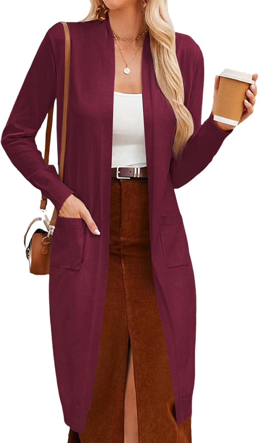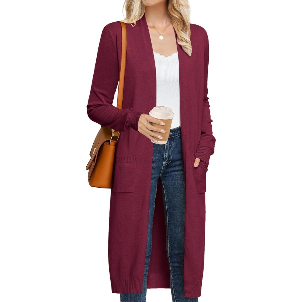 GRACE KARIN Women’s 2025 Trendy Long Cardigans Sweater Lightweight Open Front Long Sleeve Maxi Duster Coats with Pockets(Burgundy)