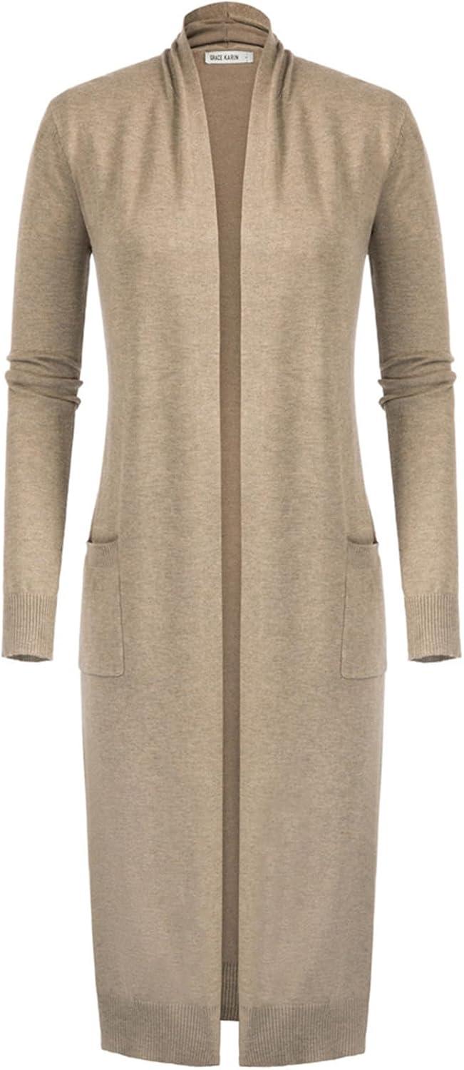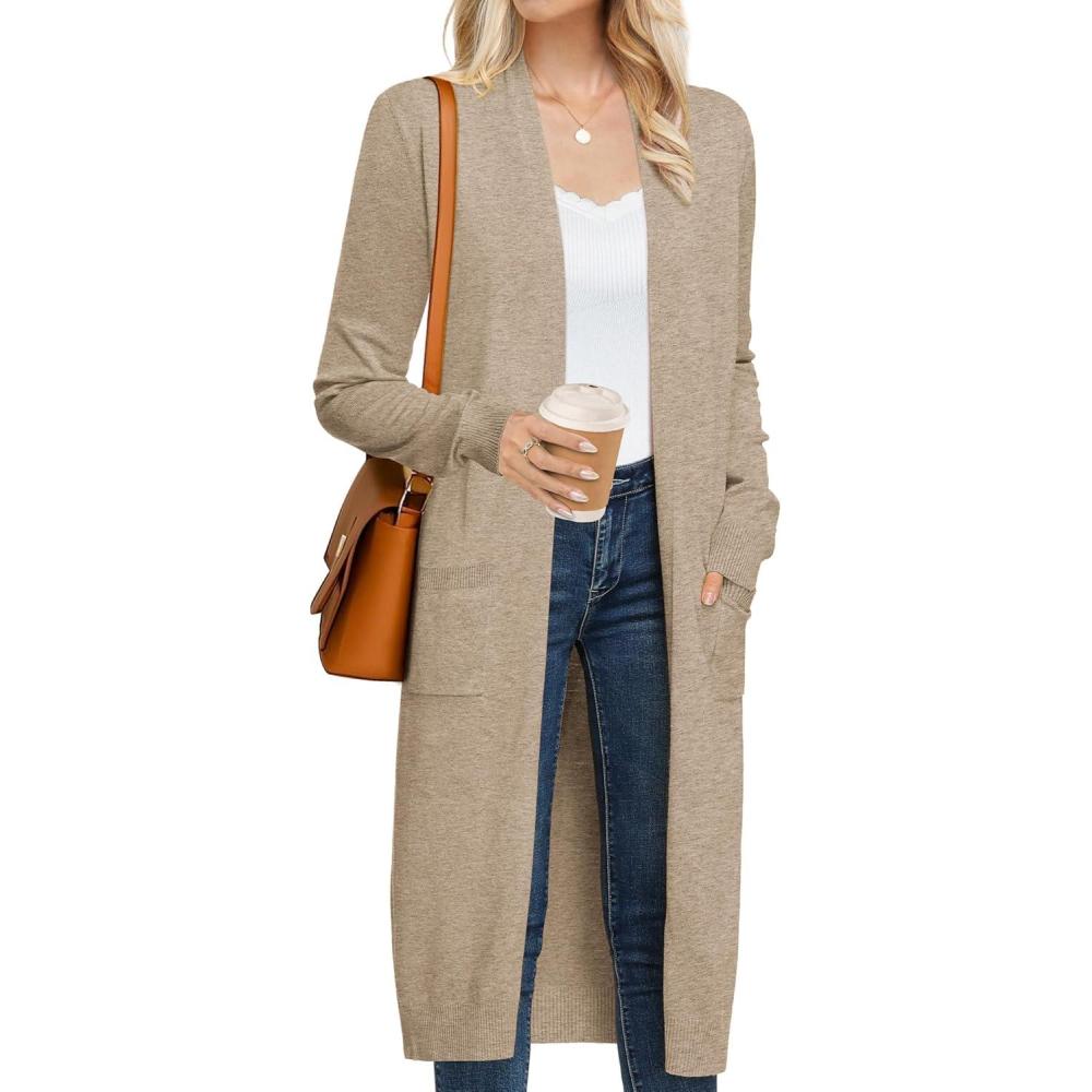 GRACE KARIN Women’s 2025 Trendy Long Cardigans Sweater Lightweight Open Front Long Sleeve Maxi Duster Coats with Pockets(Khaki)