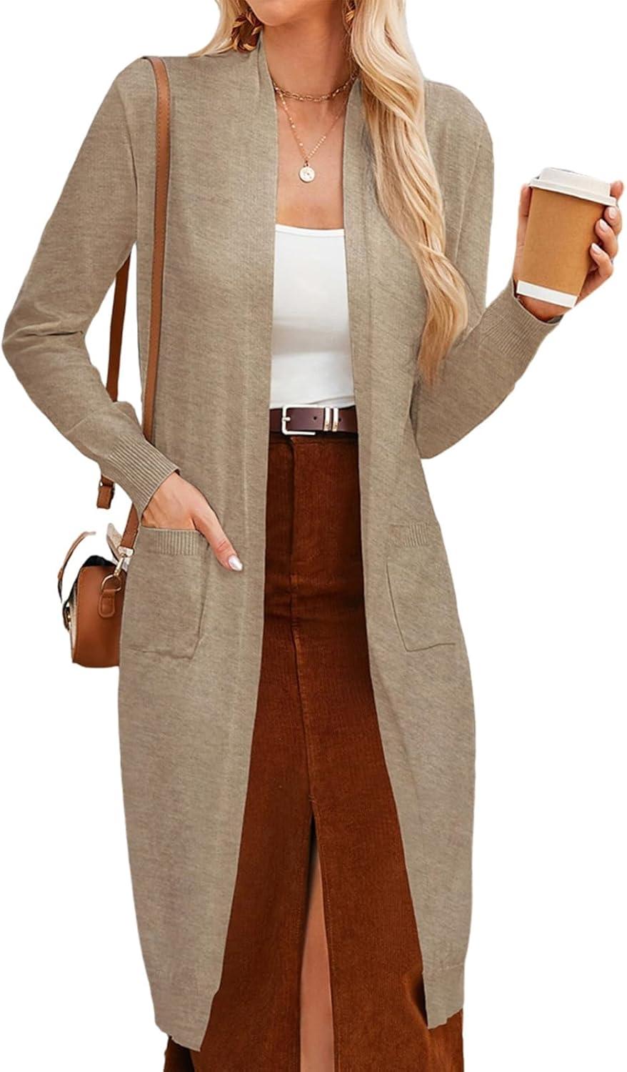 GRACE KARIN Women's 2025 Trendy Long Cardigans Sweater Lightweight Open Front Long Sleeve Maxi Duster Coats with Pockets(Khaki)