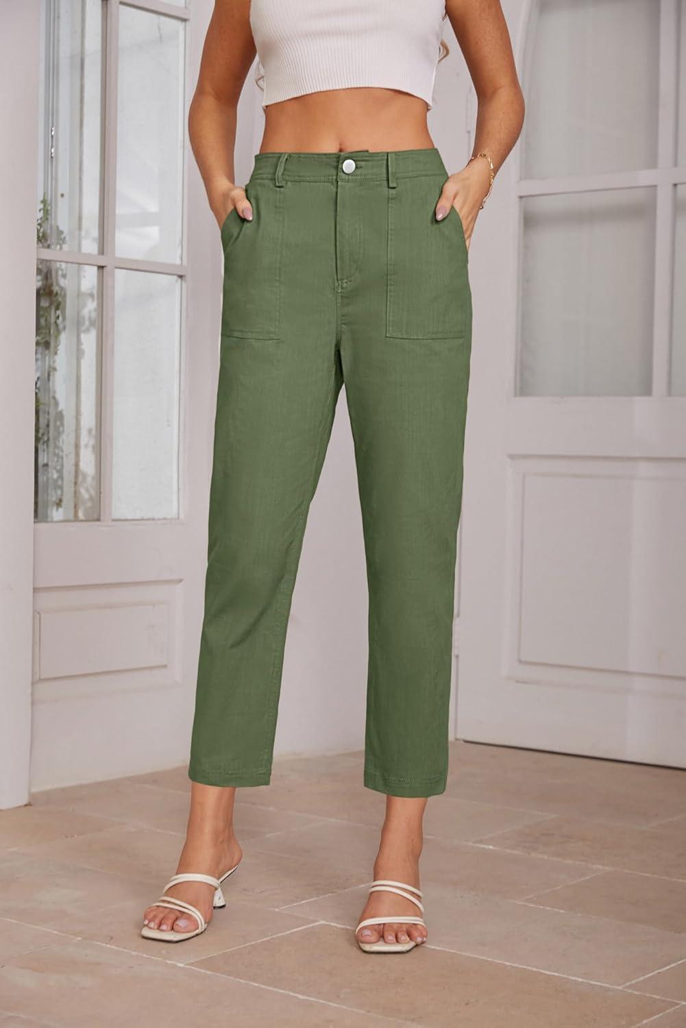 GRACE KARIN Women's 2025 Work Pants Casual High-Waisted Business Tapered Leg Trousers with Pockets(Green)