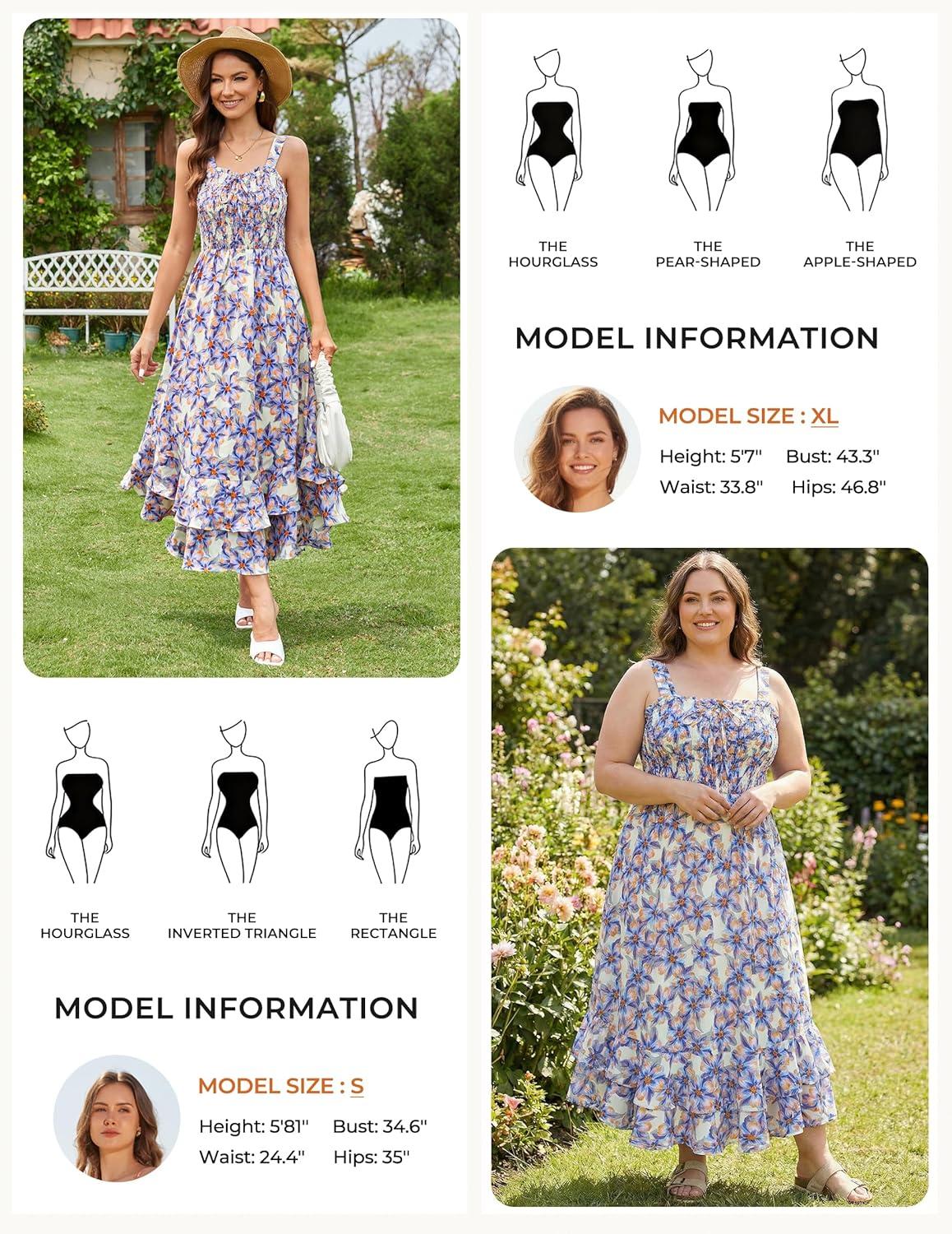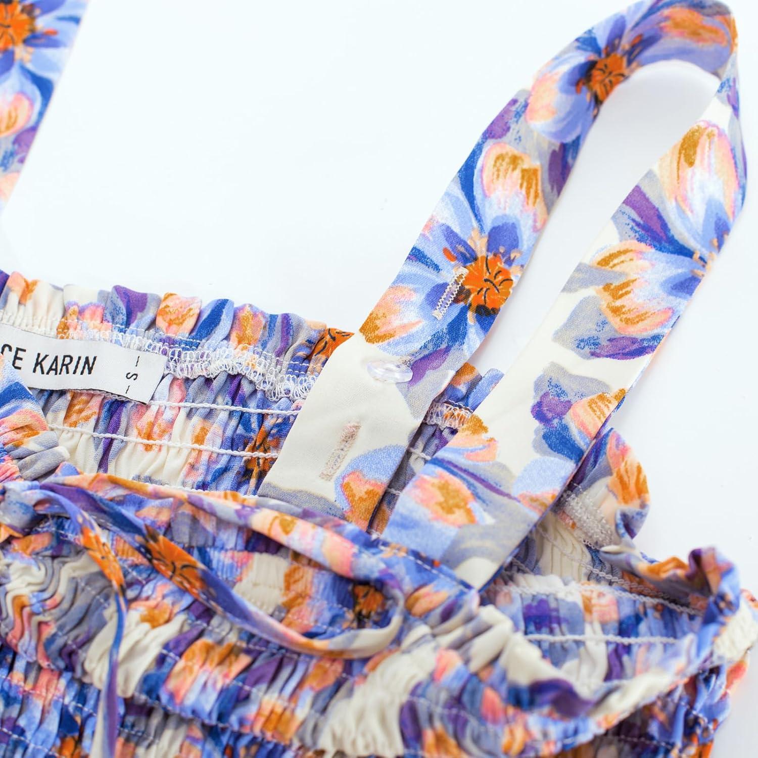 image:imageGRACE KARIN Womens 2026 Summer Floral Boho Dress Square Neck Strapped Swing A Line Sundress Beach Long Maxi OutfitsOrange Blue