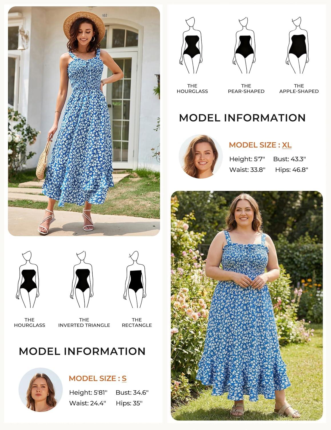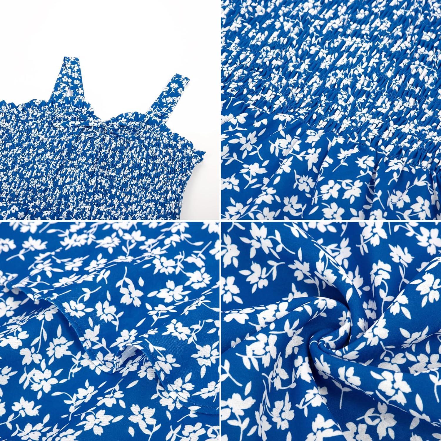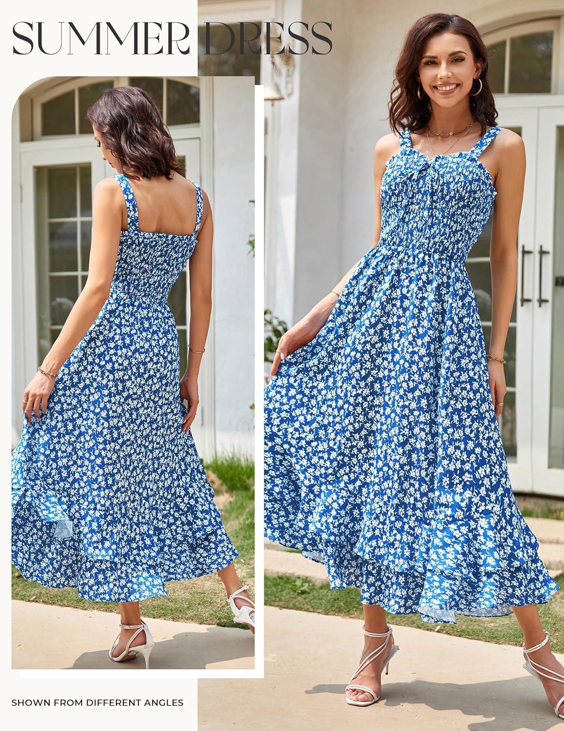 GRACE KARIN Women’s 2026 Summer Floral Boho Dress Square Neck Strapped Swing A Line Sundress Beach Long Maxi Outfits(Blue Dots)