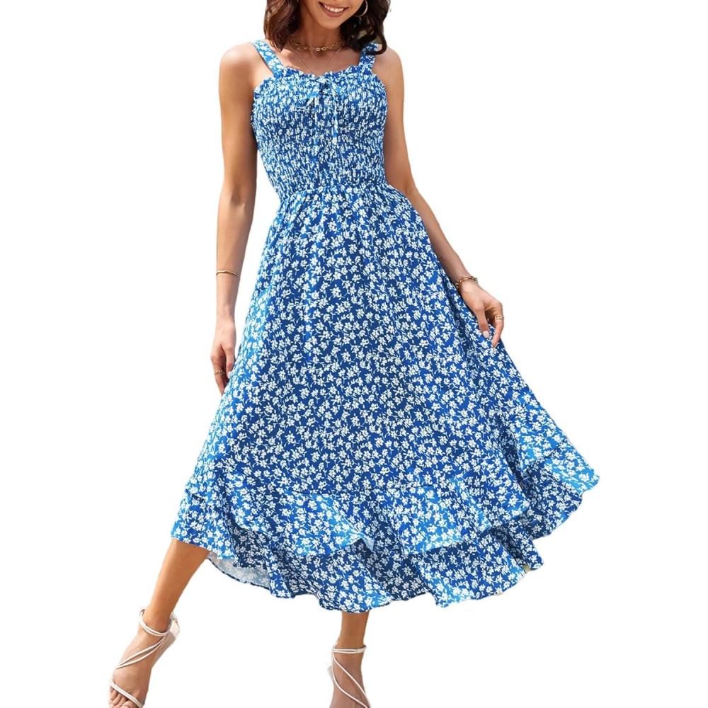 image:imageGRACE KARIN Womens 2026 Summer Floral Boho Dress Square Neck Strapped Swing A Line Sundress Beach Long Maxi OutfitsBlue