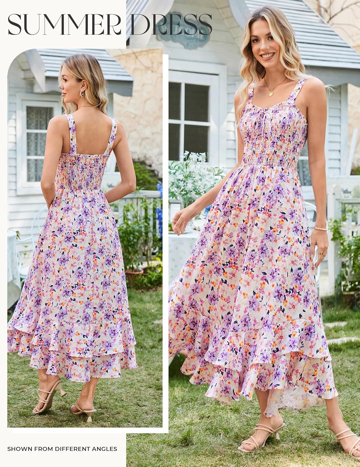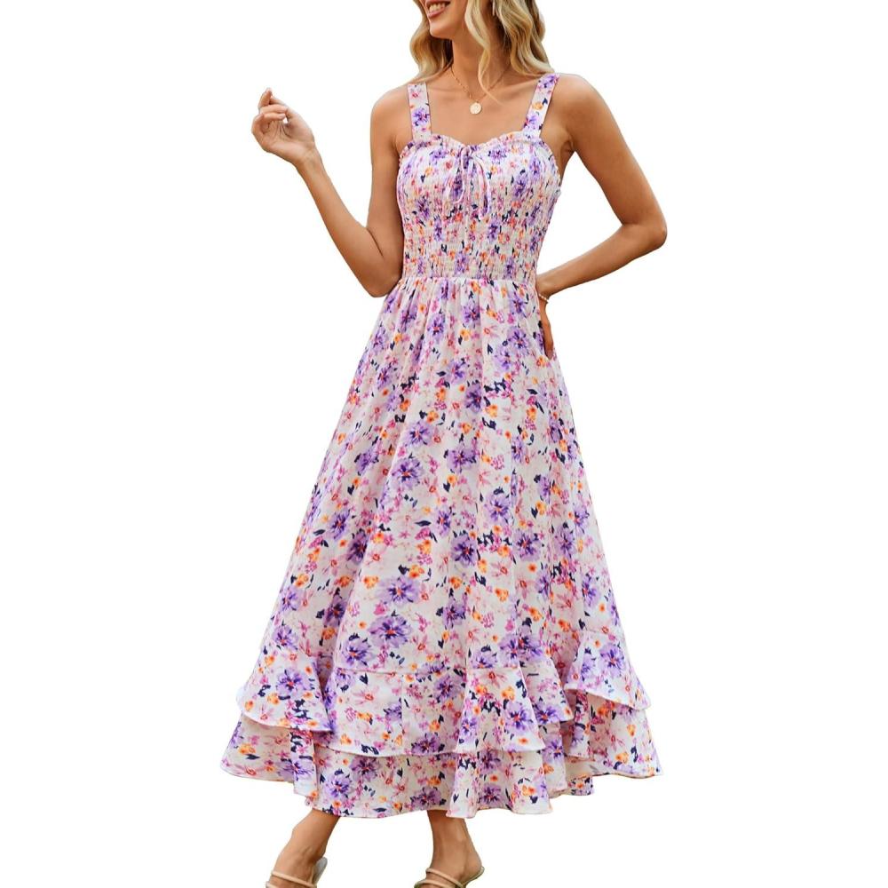 image:imageGRACE KARIN Womens 2026 Summer Floral Boho Dress Square Neck Strapped Swing A Line Sundress Beach Long Maxi OutfitsPurple Floral