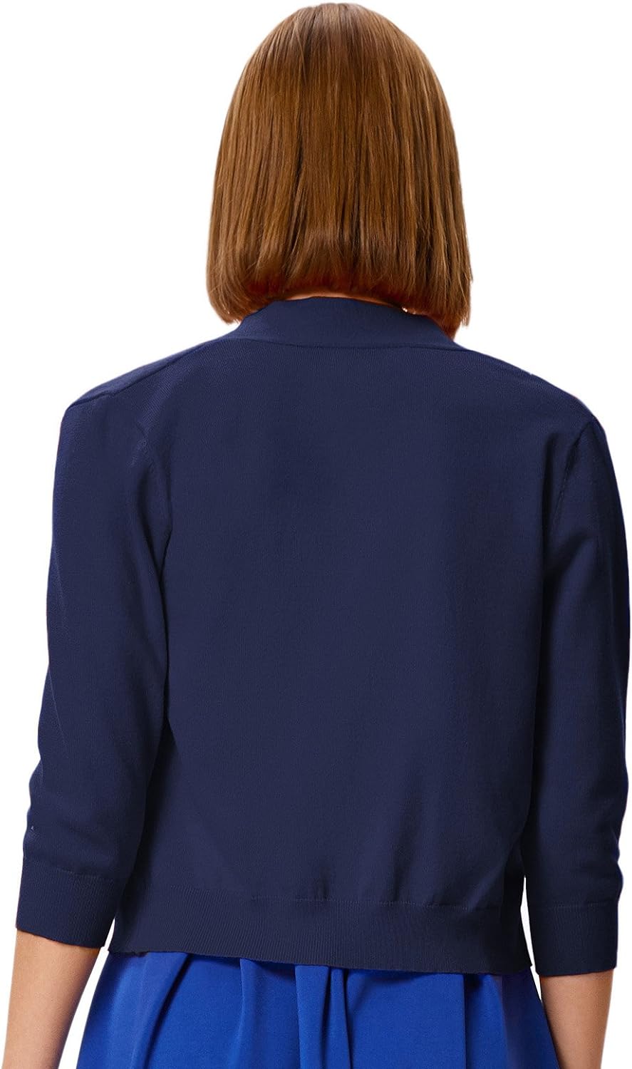 GRACE KARIN Women's 3/4 Sleeve Cardigan Knit Sweaters Cropped Open Front Shrug Bolero…(11-navy)