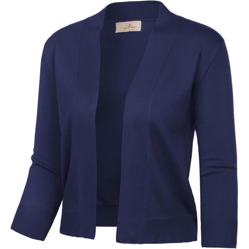 GRACE KARIN Women’s 3/4 Sleeve Cardigan Knit Sweaters Cropped Open Front Shrug Bolero…(11-navy)