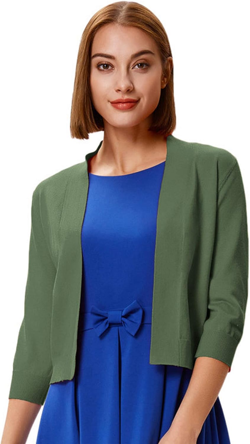 GRACE KARIN Women's 3/4 Sleeve Cardigan Knit Sweaters Cropped Open Front Shrug Bolero…(Dark Olive Green)