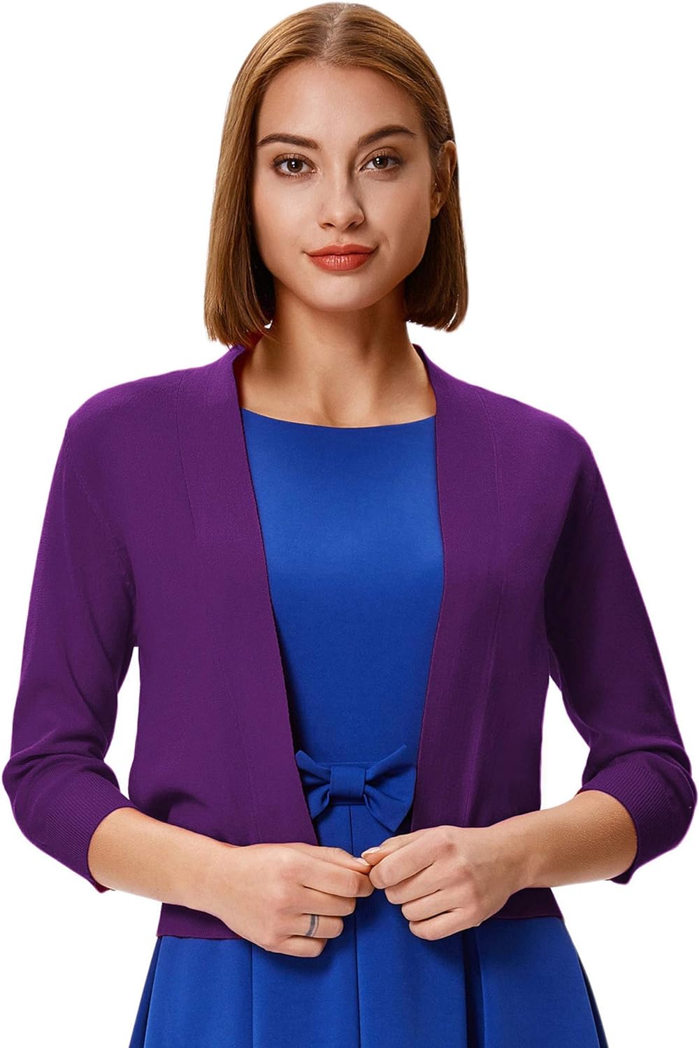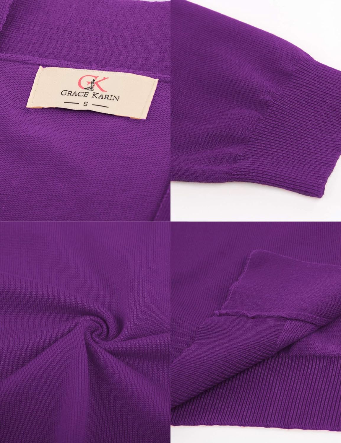 GRACE KARIN Womens 34 Sleeve Cardigan Knit Sweaters Cropped Open Front Shrug BoleroPurple