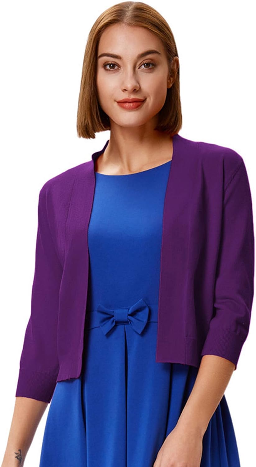 GRACE KARIN Women's 3/4 Sleeve Cardigan Knit Sweaters Cropped Open Front Shrug Bolero…(Purple)
