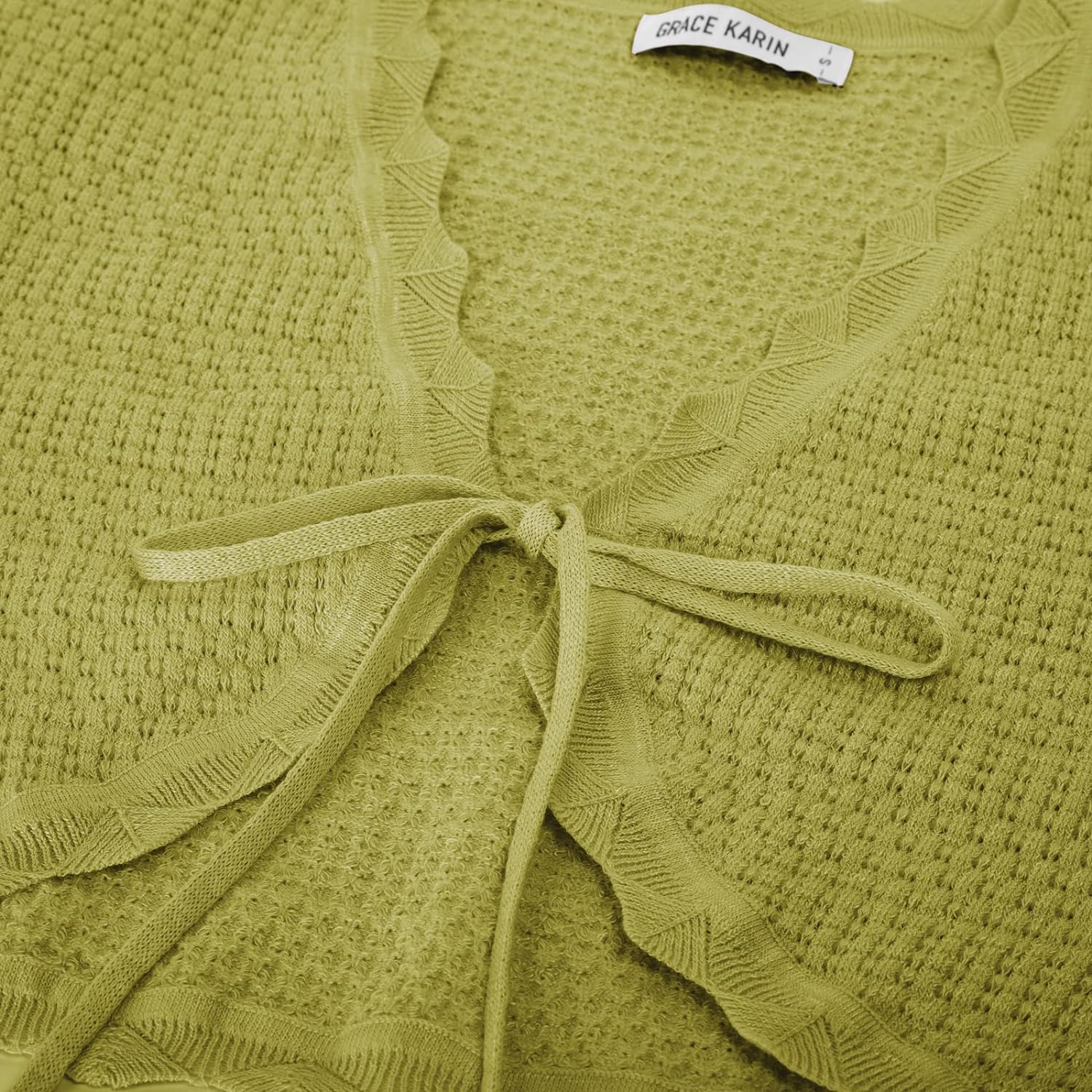 GRACE KARIN Women's 3/4 Sleeve Cropped Cardigan Sweater Elegant Crochet Knit Bolero Shrugs for Women Dresses(Yellow Green)