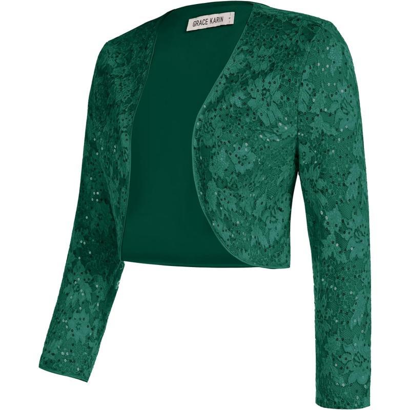 GRACE KARIN Womens 34 Sleeve Open Front Sequin Floral Lace Cropped Shrug Bolero CardiganDark Green