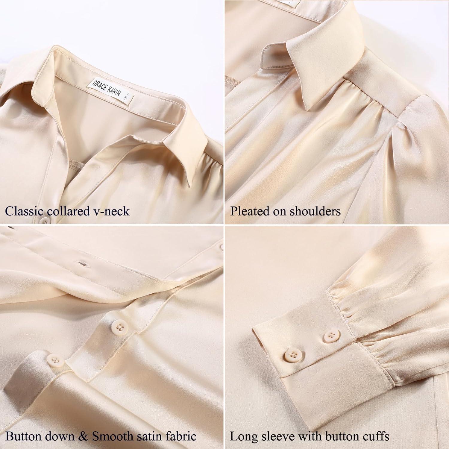 Save up to 40% on GRACE KARIN Womens Business Casual Tops Long Sleeve Satin Silk Blouse Button Down Work Shirts Dressy Tops Fall Fashion 2025(Beige) styles during our end-of-season sale.