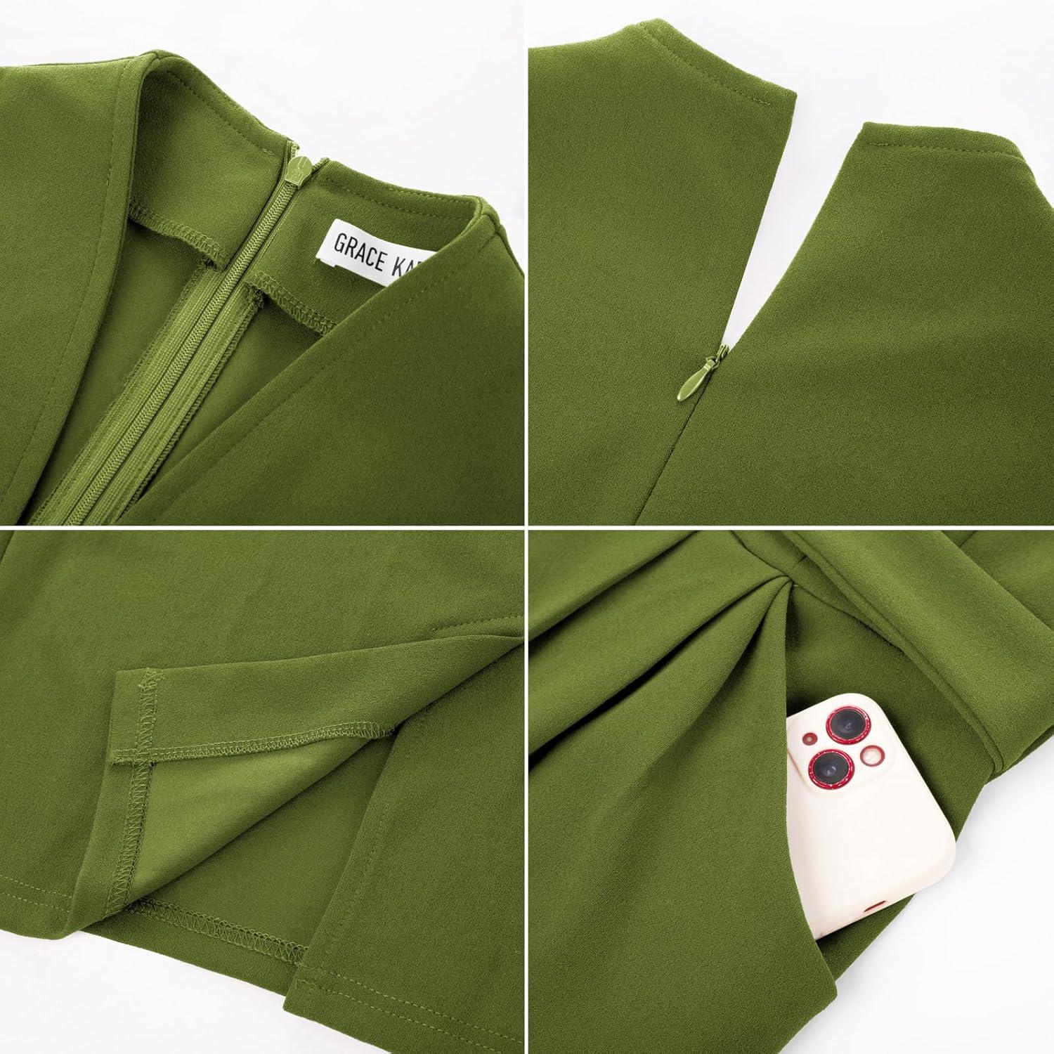 Be the first to review “GRACE KARIN Women’s Business Dresses Sleeveless V Neck Bodycon Sheath Dress Zipper Up Office Work Dress with Pockets(Army Green)”