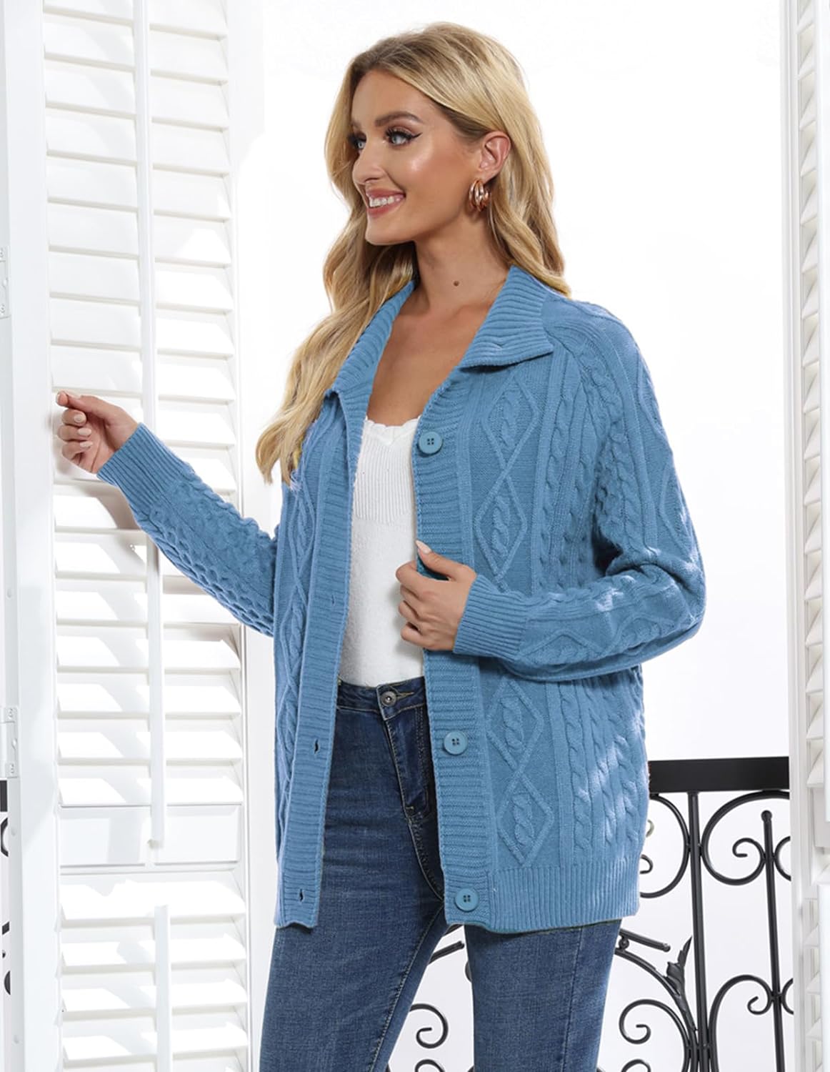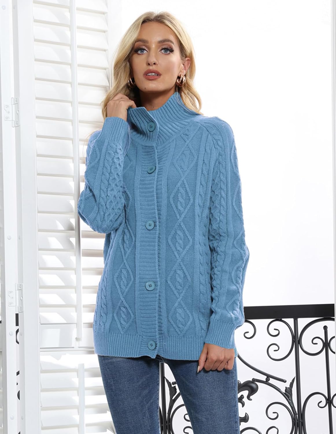 Be the first to review “GRACE KARIN Women’s Button Down Chunky Cable Knit Cardigan Long Sleeve Stand Collar Cardigan Sweaters Fall Outwear(Blue)” Cancel reply