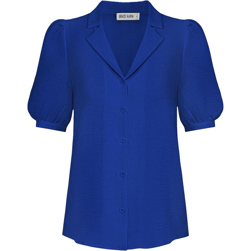 GRACE KARIN Womens Button Down Shirts Short Sleeve Long Sleeve Business Casual Tops V Neck Blouse(Royal Blue 1)