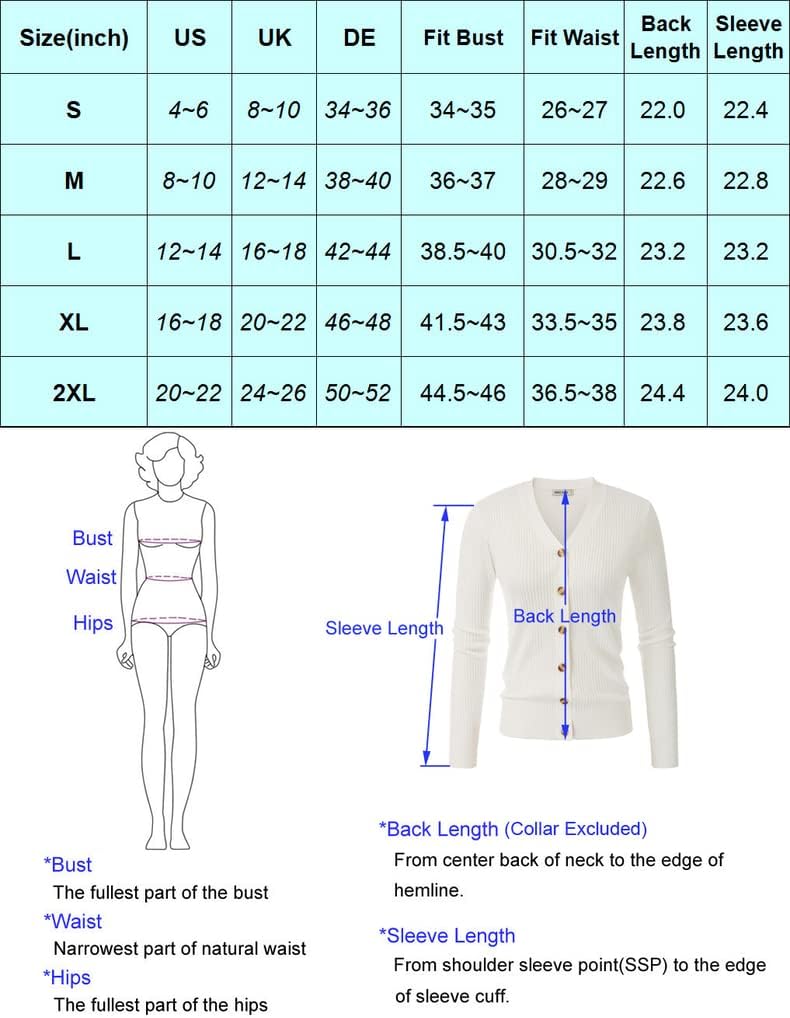 GRACE KARIN Womens Button Down Vee Neck Long Sleeve Rib Knit Cardigan Sweaters43 Sleeve White