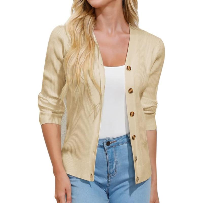 GRACE KARIN Women’s Button Down Vee Neck Long Sleeve Rib Knit Cardigan Sweaters(4/3 Sleeve White)