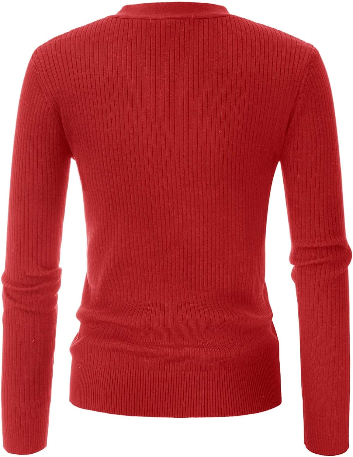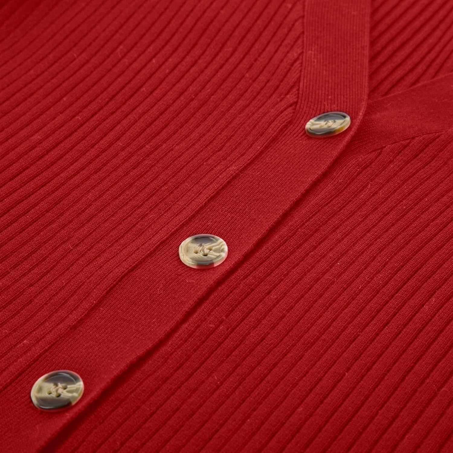 GRACE KARIN Women's Button Down Vee Neck Long Sleeve Rib Knit Cardigan Sweaters(Red)