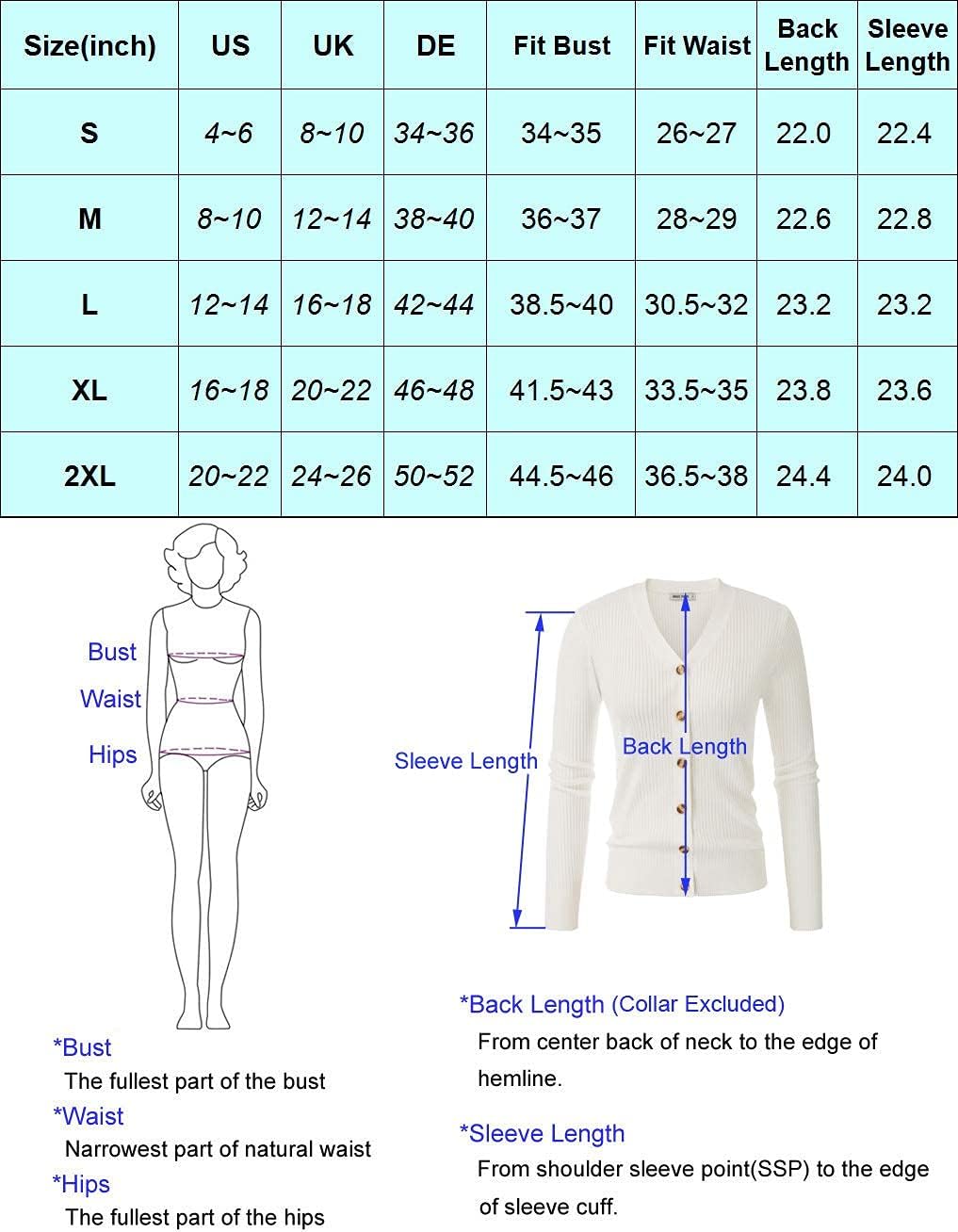 GRACE KARIN Women’s Button Down Vee Neck Long Sleeve Rib Knit Cardigan Sweaters(Light Blue)