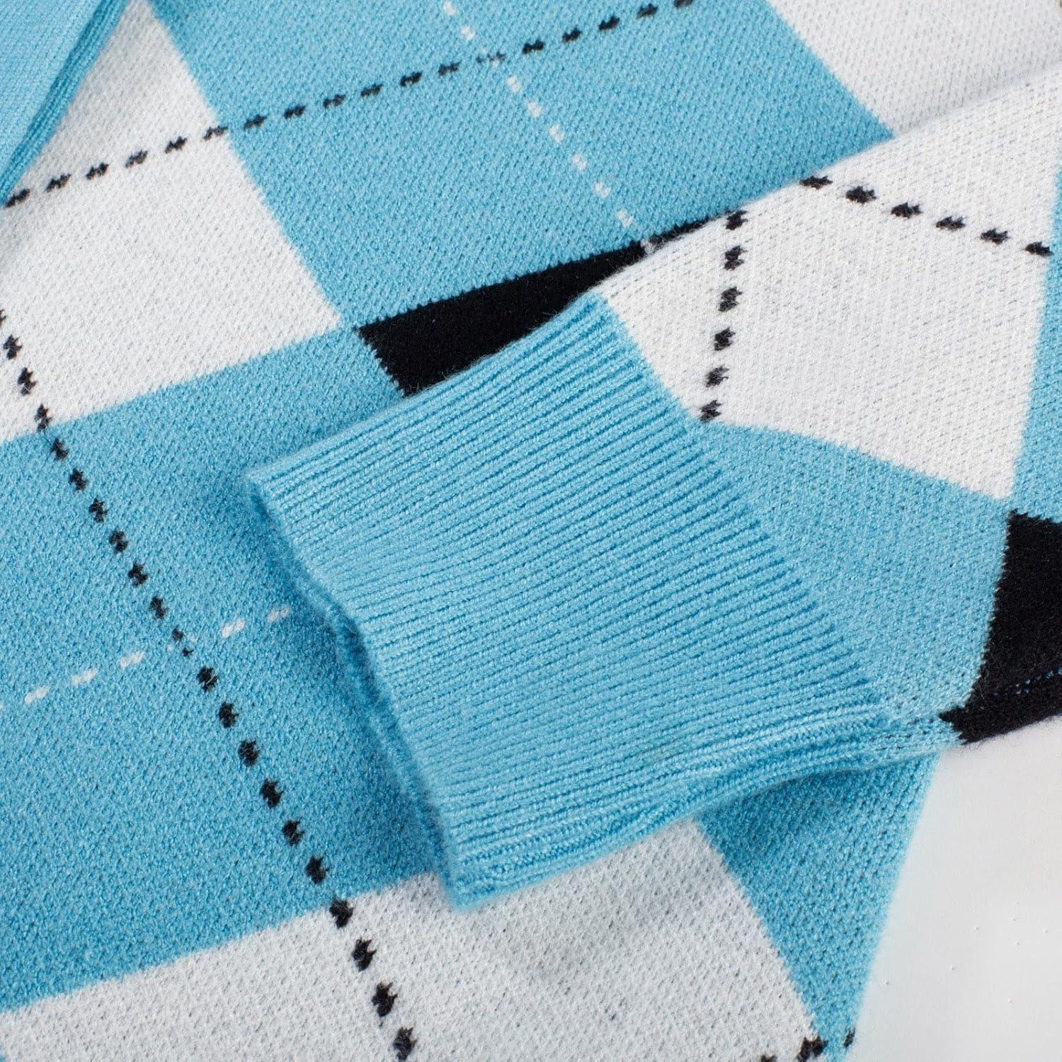 GRACE KARIN Womens Cardigan Sweater Fall Long Sleeve Argyle Sweater V Neck Button Up Cardigan Color Block Preppy Clothes(Blue White)