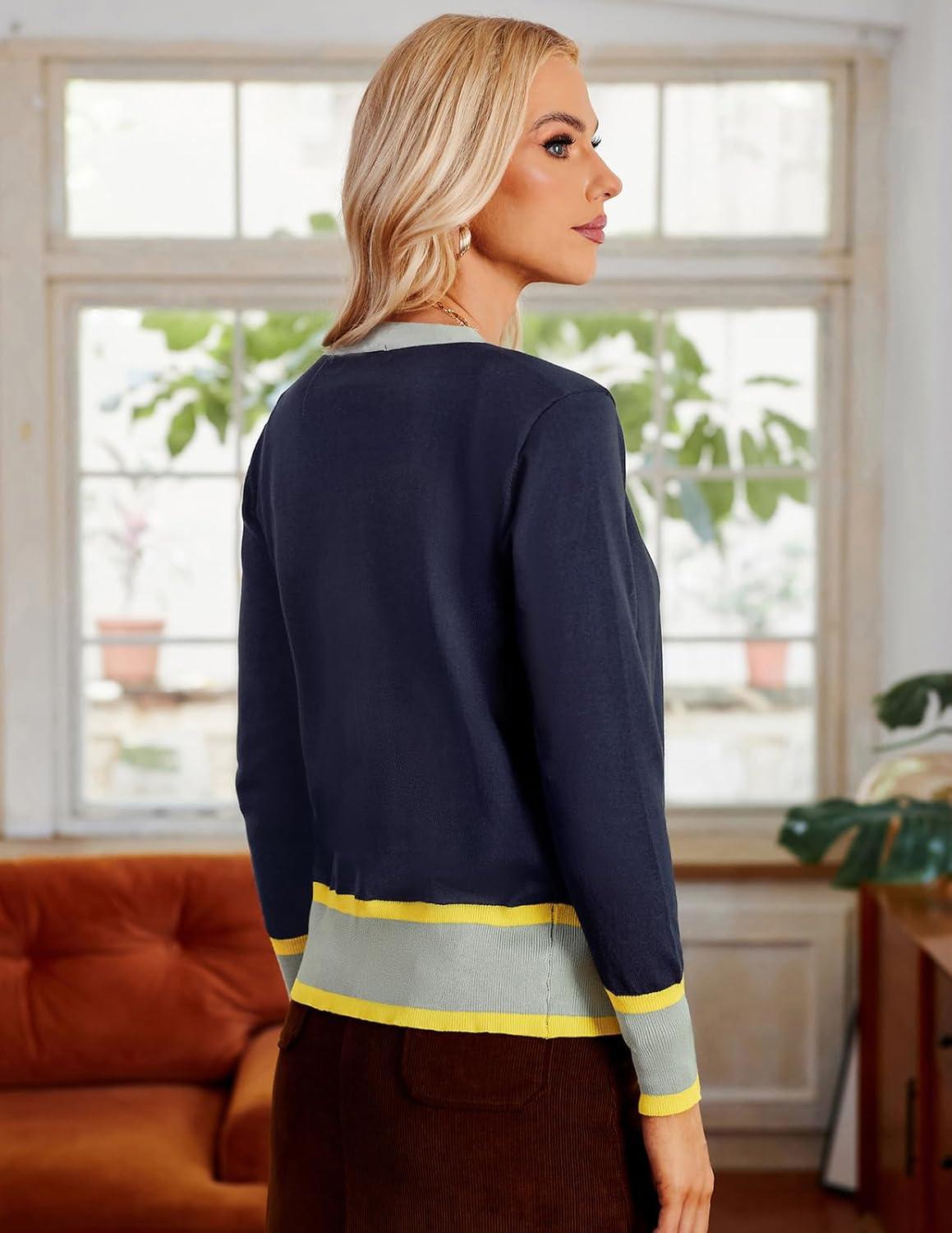GRACE KARIN Womens Cardigan Sweaters Lightweight Long Sleeve Cropped Cardigan Fall Fashion Outfits Clothes Striped Shrug(Contrast Dark Blue)
