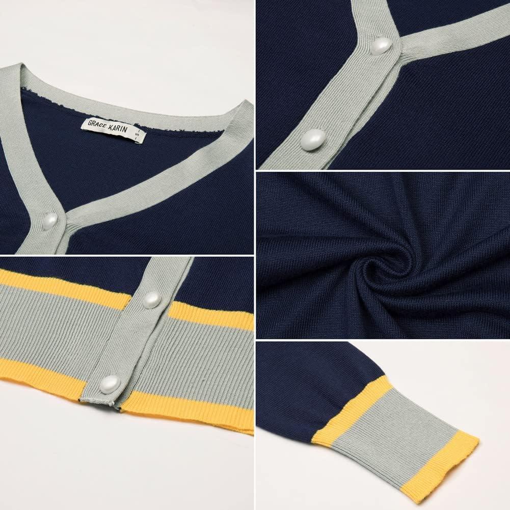 imageGRACE KARIN Womens Cardigan Sweaters Lightweight Long Sleeve Cropped Cardigan Fall Fashion Outfits Clothes Striped ShrugContrast Dark Blue