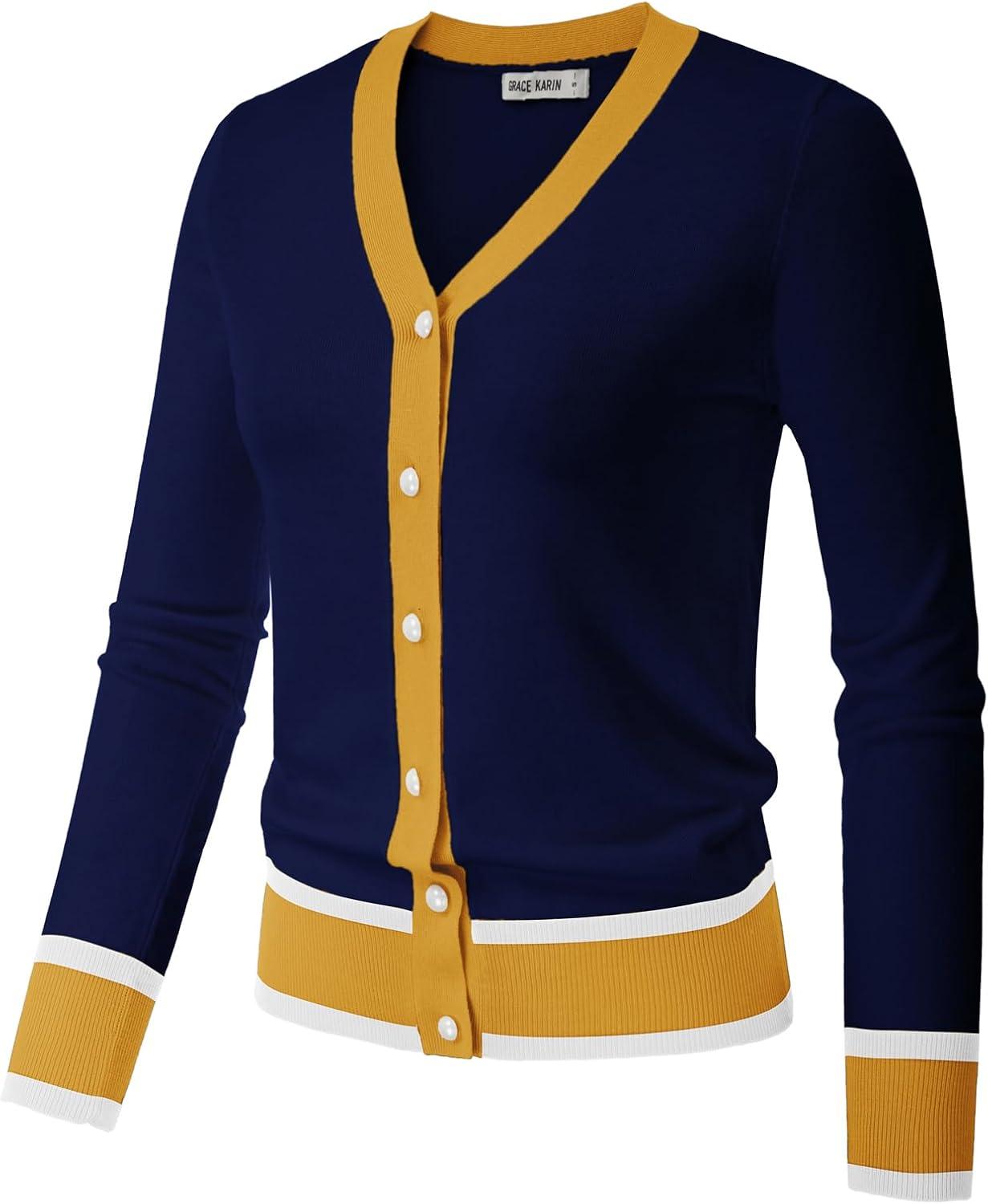 GRACE KARIN Womens Cardigan Sweaters Lightweight Long Sleeve Cropped Cardigan Fall Fashion Outfits Clothes Striped Shrug(Navy Yellow)