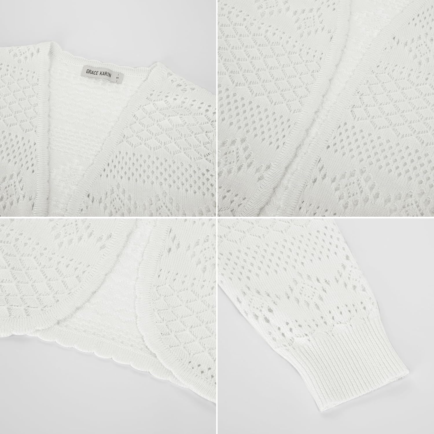 GRACE KARIN Women's Cardigans 3/4 Sleeve Sweater Cropped Cardigan Hollow Out Knit Shrugs for Dresses Tops(Ivory White)