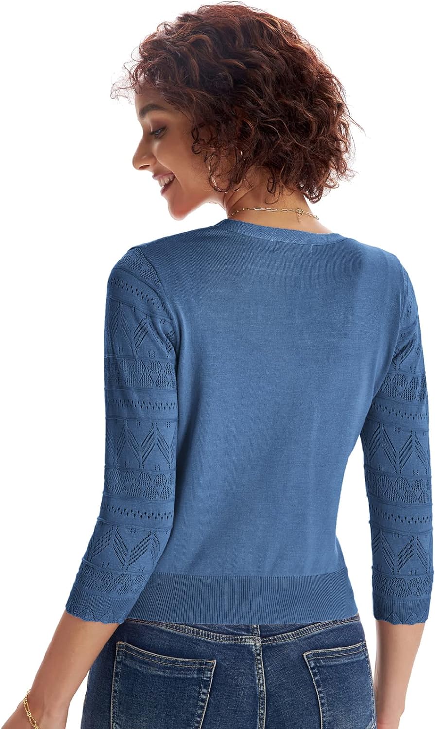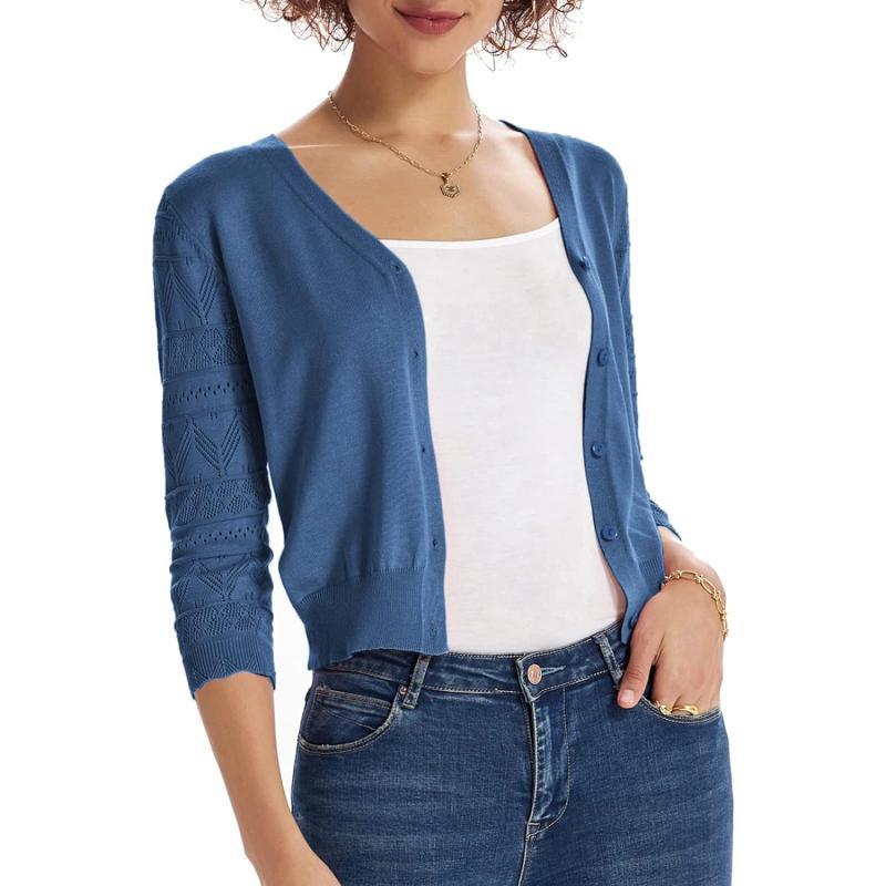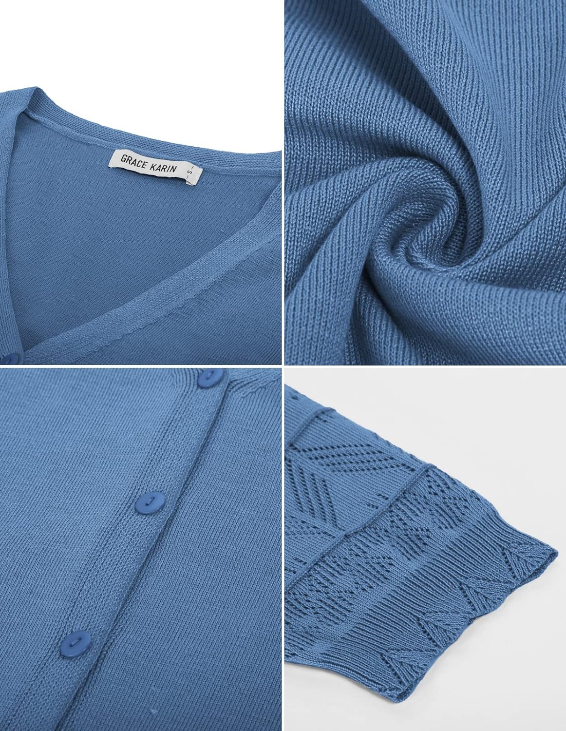 GRACE KARIN Women's Cardigans Shrugs for Dresses 3/4 Sleeve Cardigan V Neck Button Down Sweater Lightweight(Haze Blue)