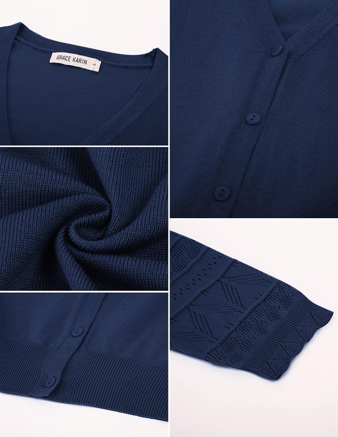 GRACE KARIN Womens Cardigans Shrugs for Dresses 34 Sleeve Cardigan V Neck Button Down Sweater LightweightNavy Blue